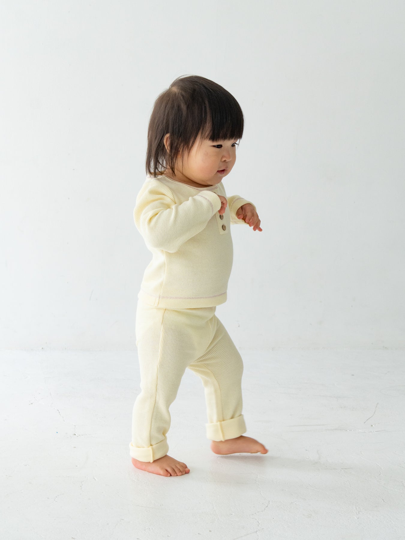 お揃いの Waffle henry tee とセットアップでの着用もおすすめです。