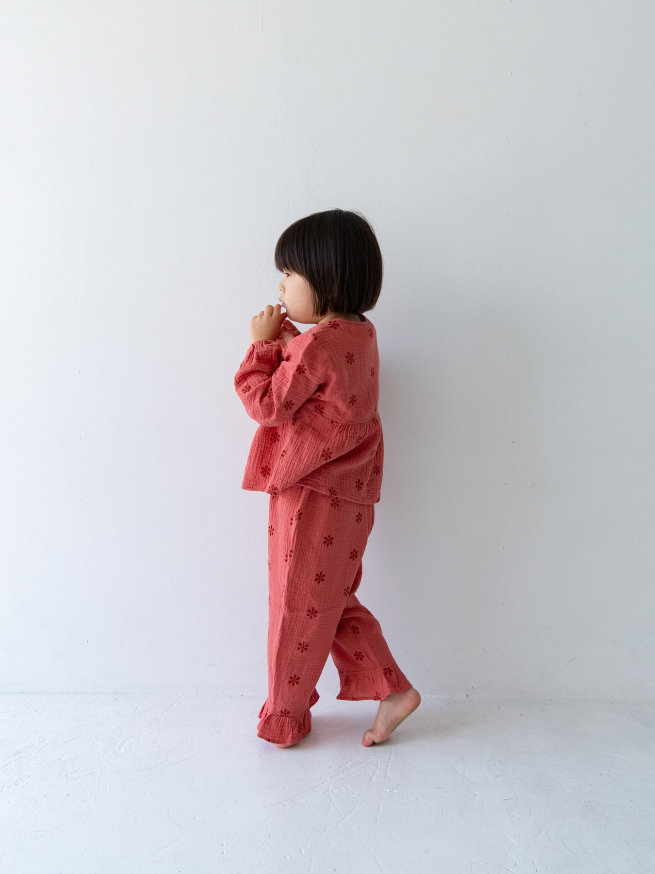 お揃いの「Flower Crepe Cardigan」とセットアップで着るのもおすすめ。
