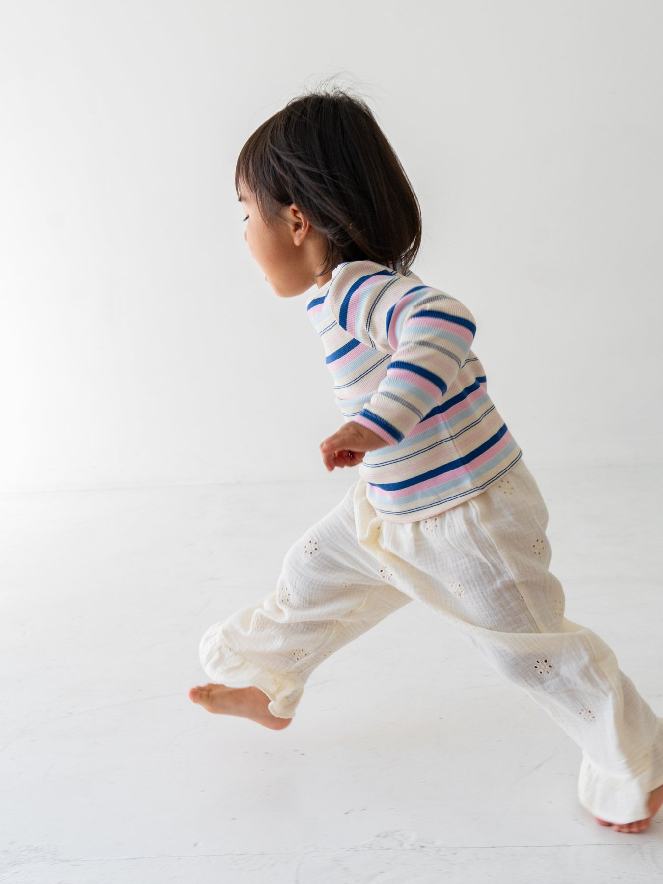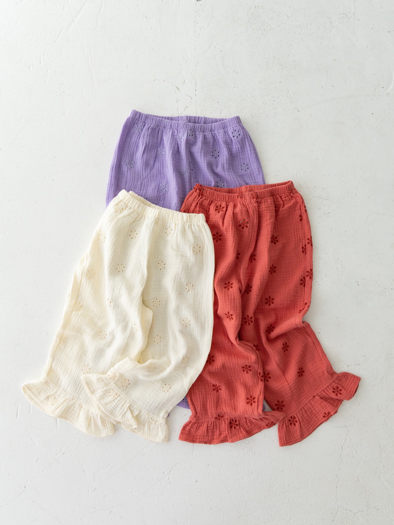 やさしく華やぐ、Flower カットワークの涼やかパンツ