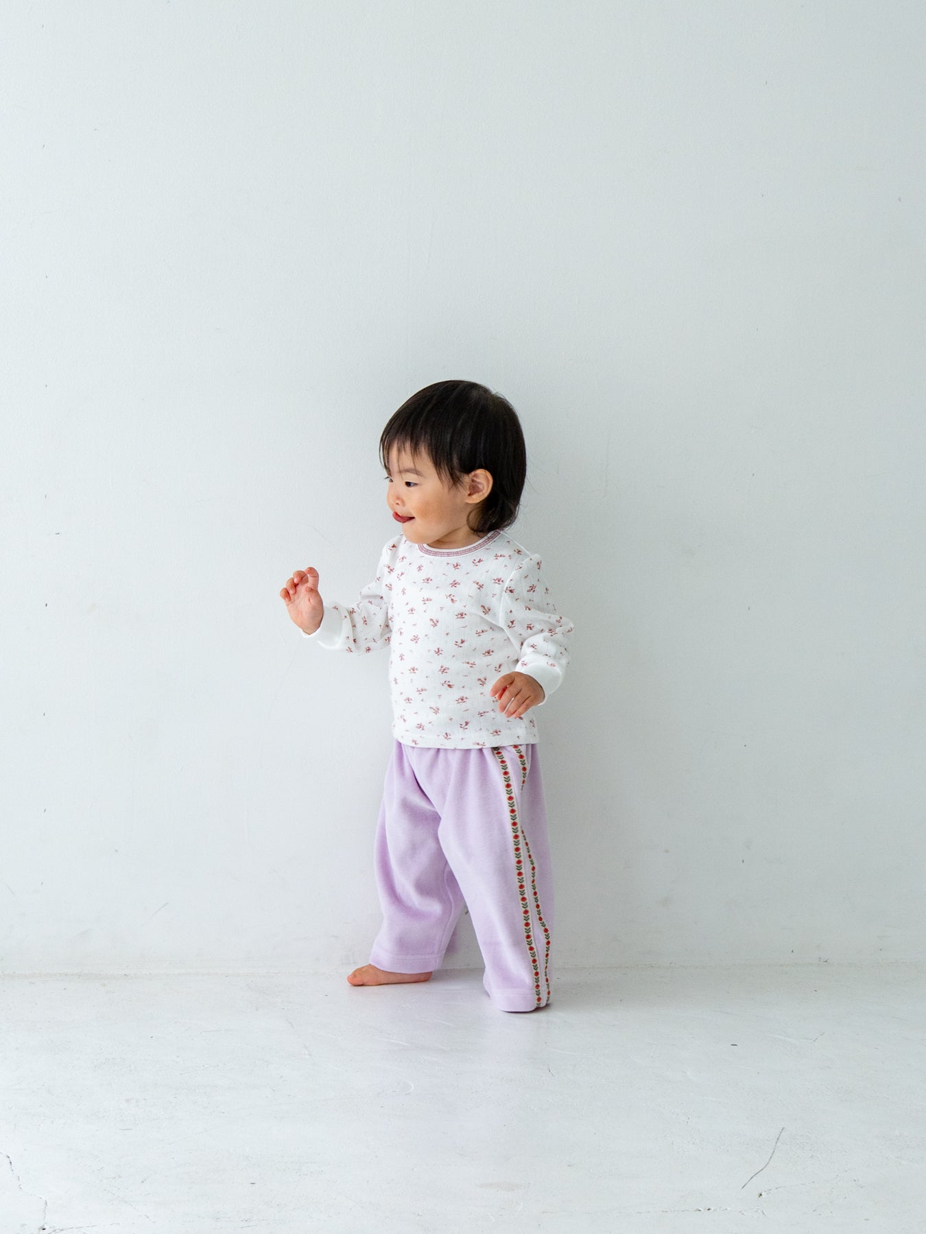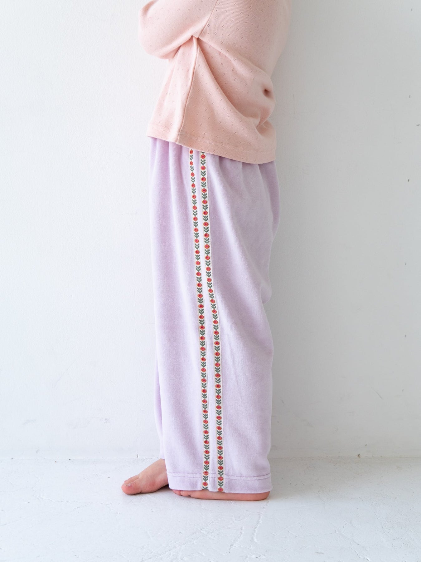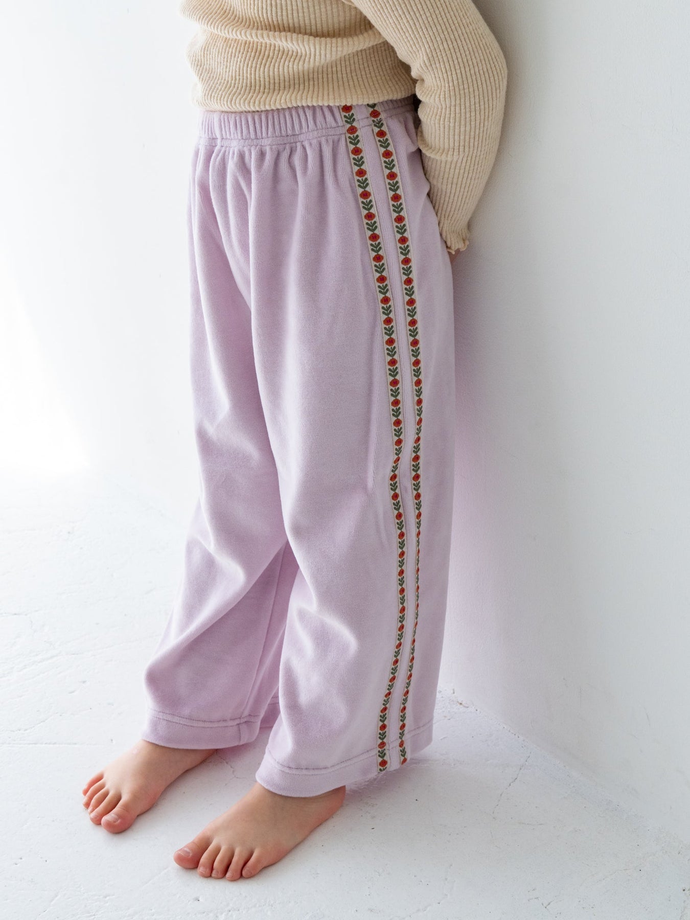 やさしいベロアと遊び心、毎日にフィットするリラックスパンツ