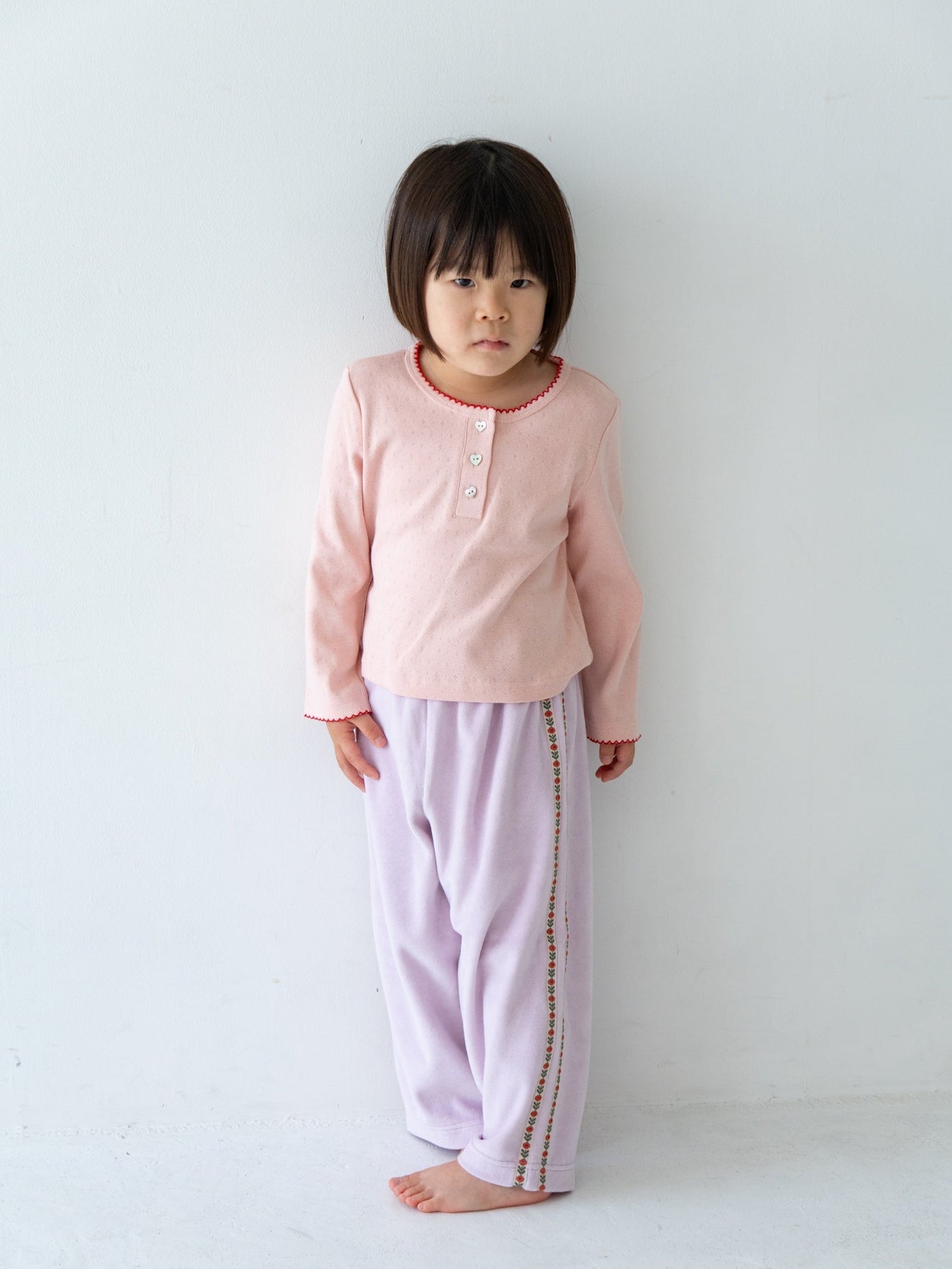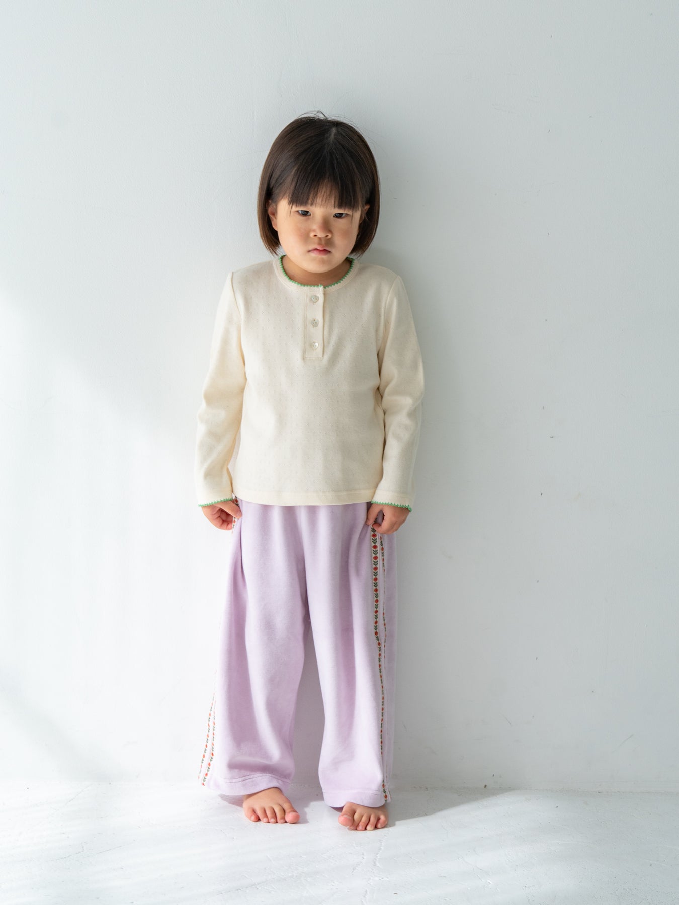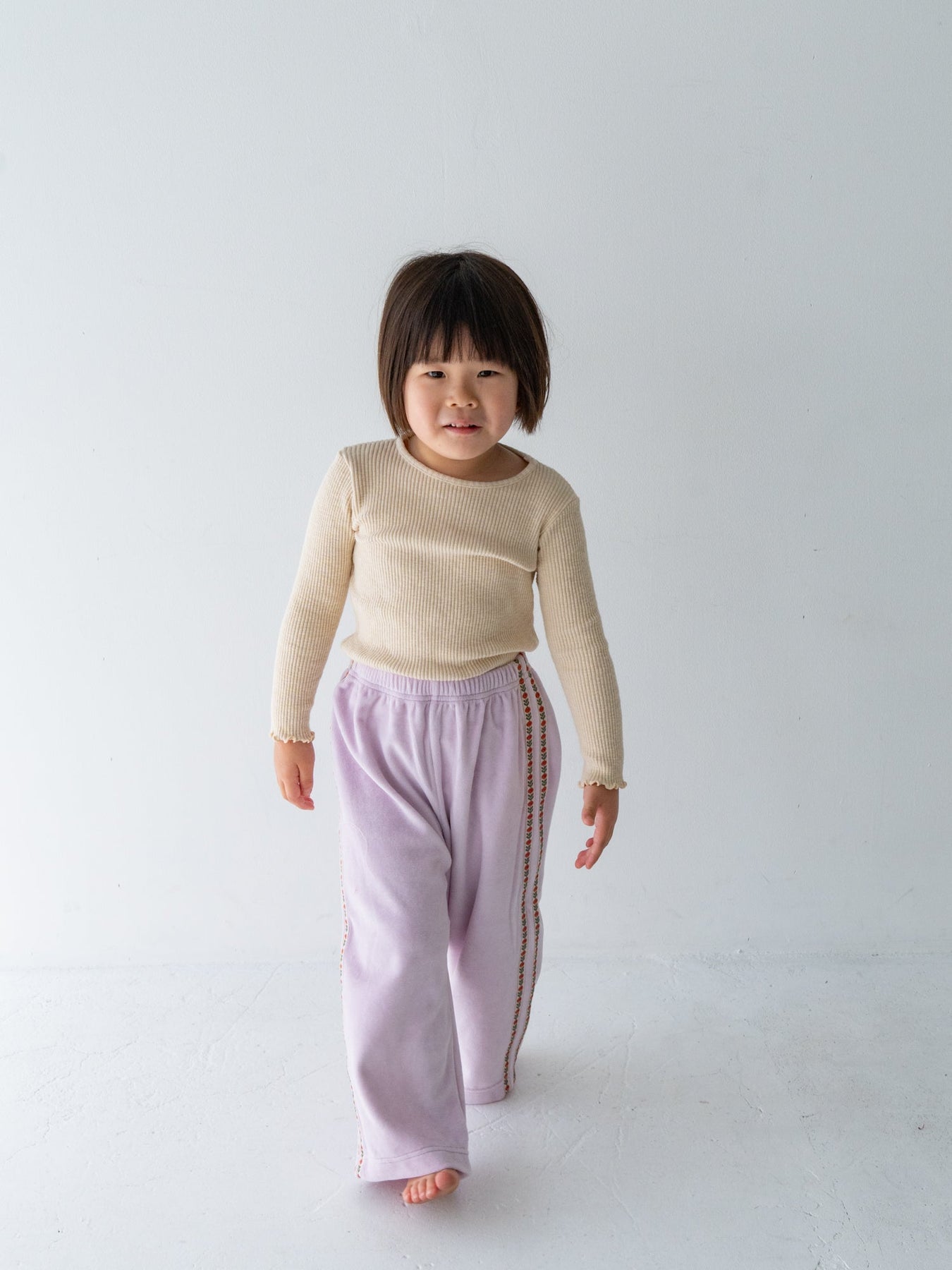 やさしいベロアと遊び心、毎日にフィットするリラックスパンツ
