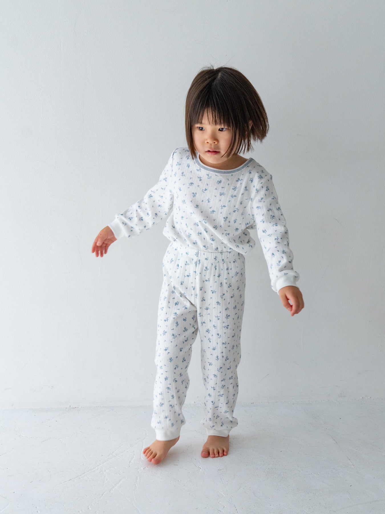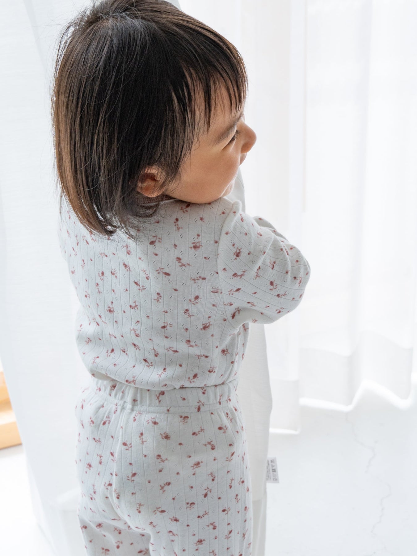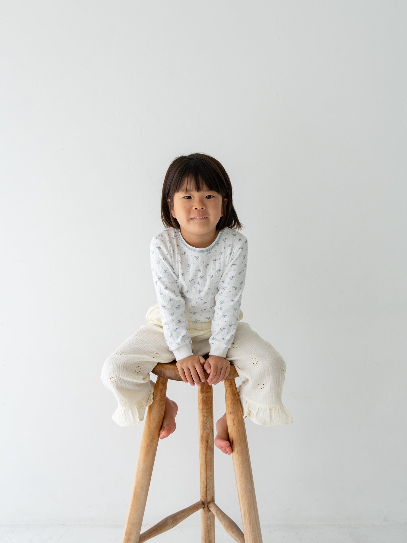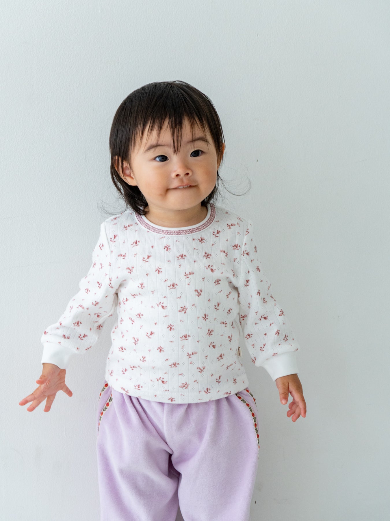 可愛らしい花柄を散りばめたコットンアイレット生地が魅力の長袖カットソー。