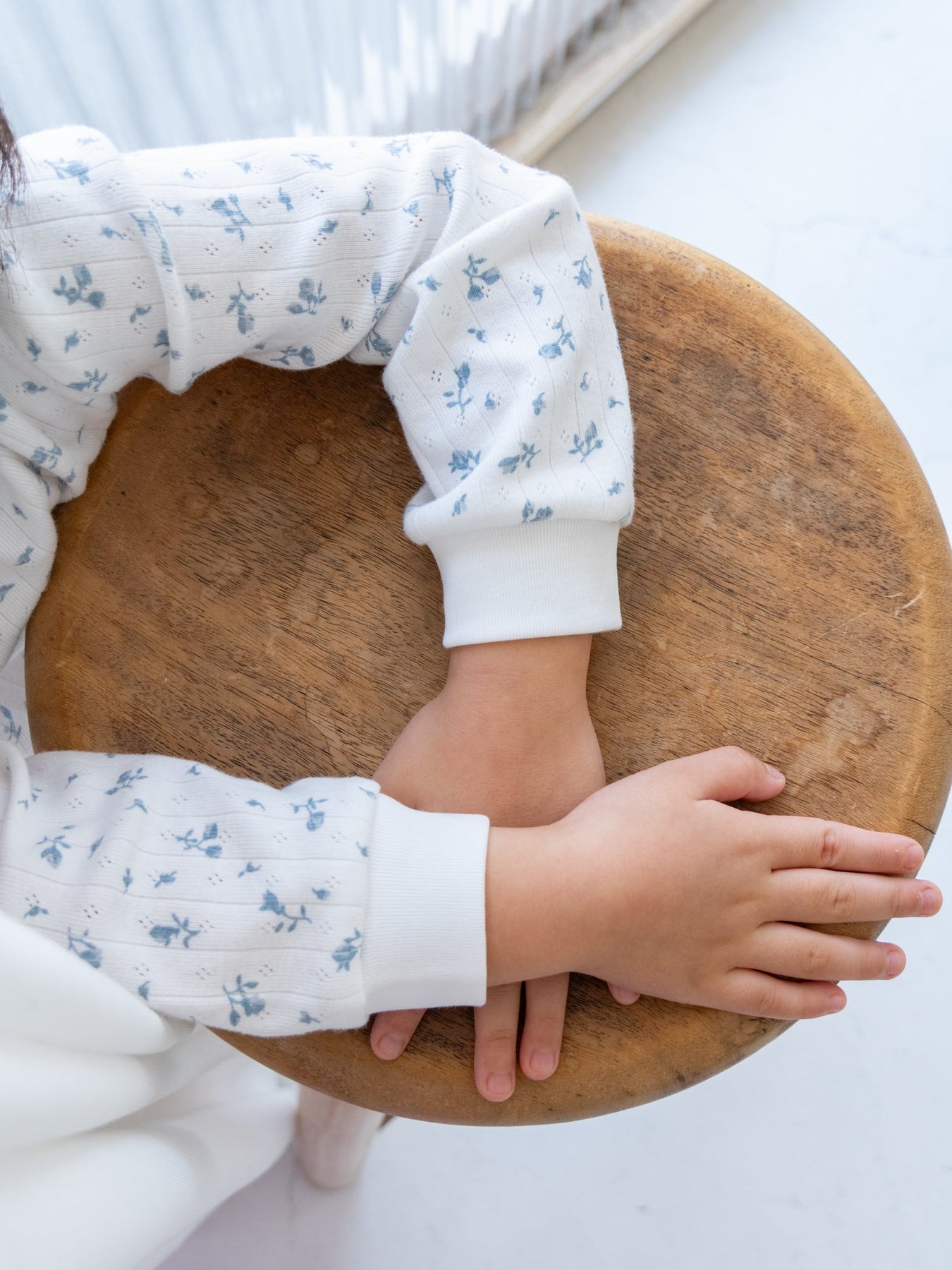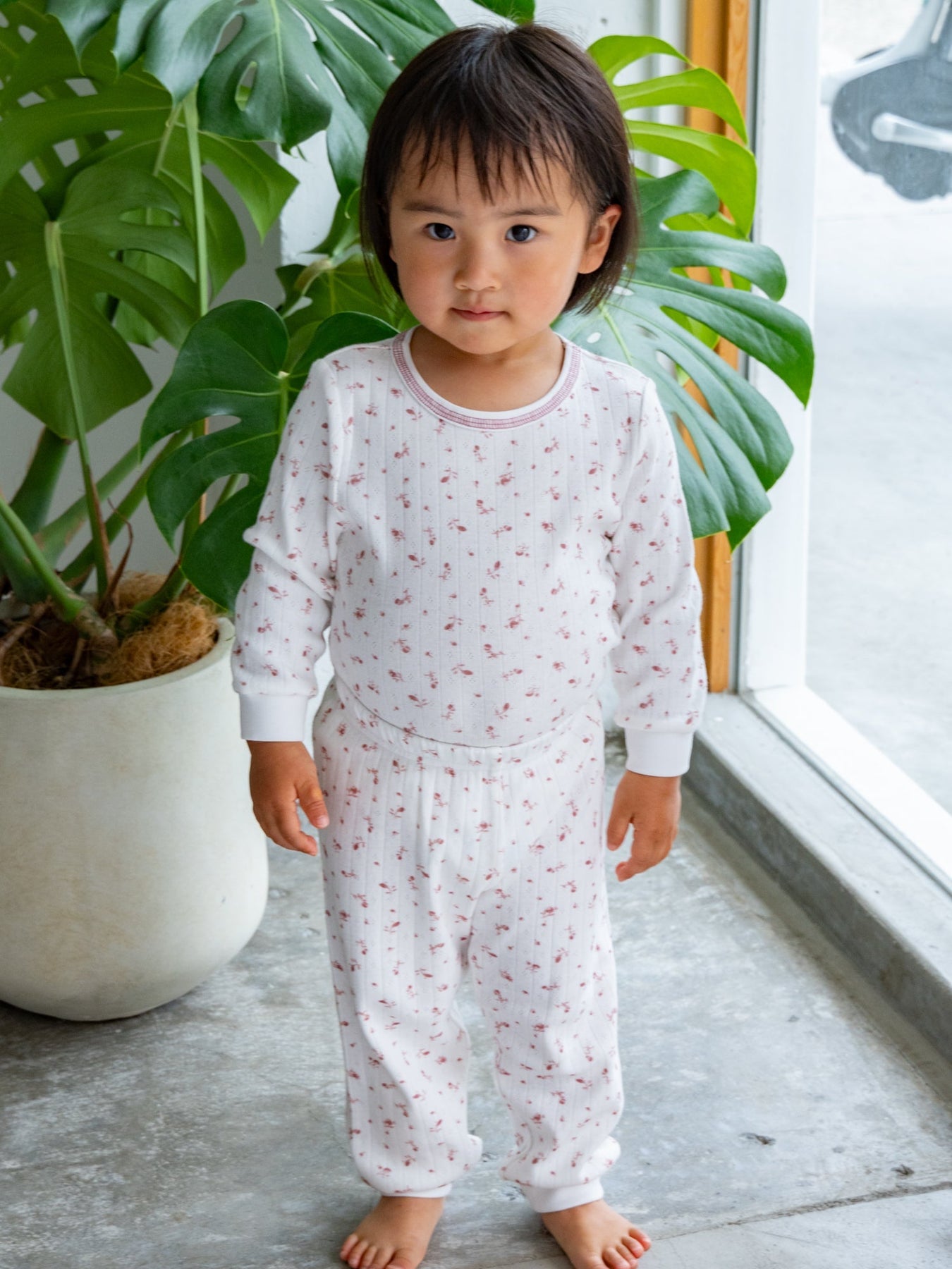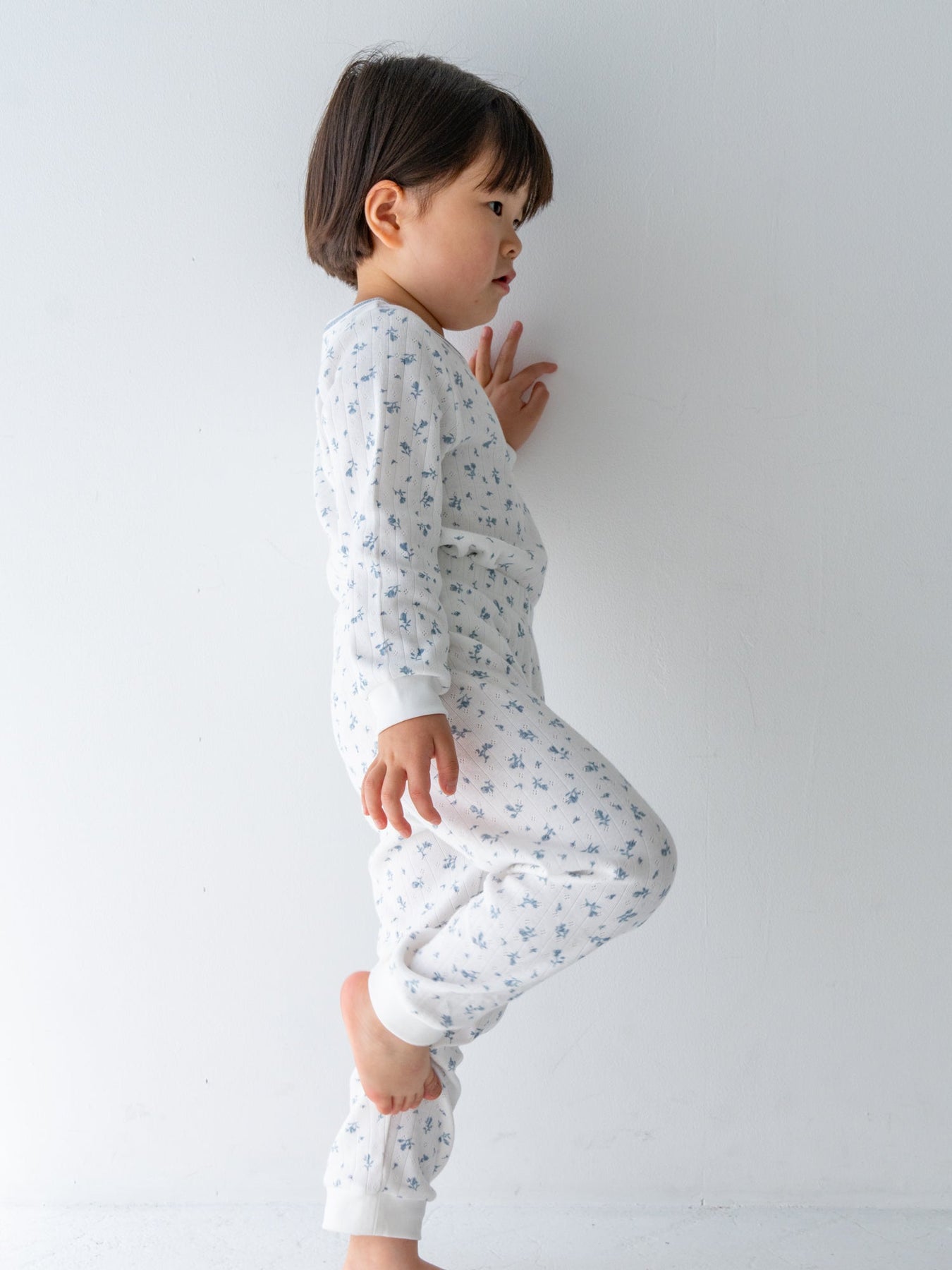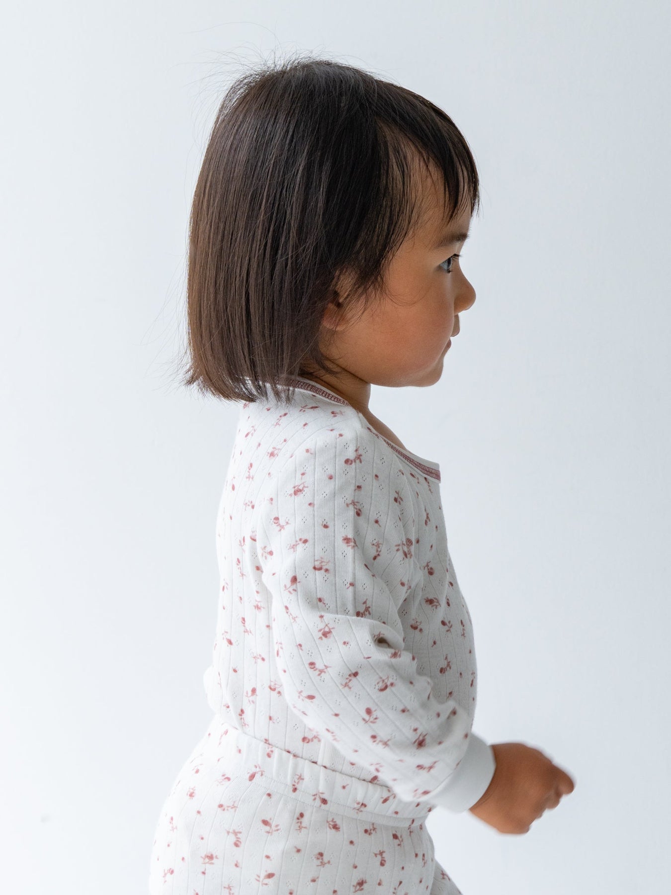 可愛らしい花柄を散りばめたコットンアイレット生地が魅力の長袖カットソー。