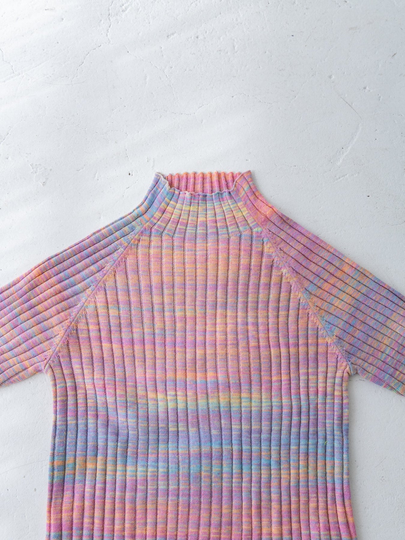 鮮やかなグラデーションが目を惹く、ハイネックトップス。