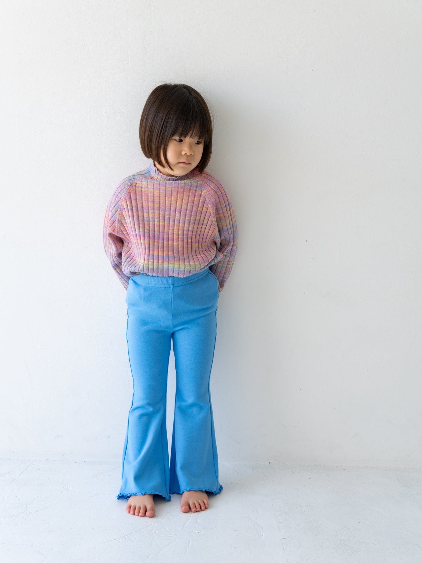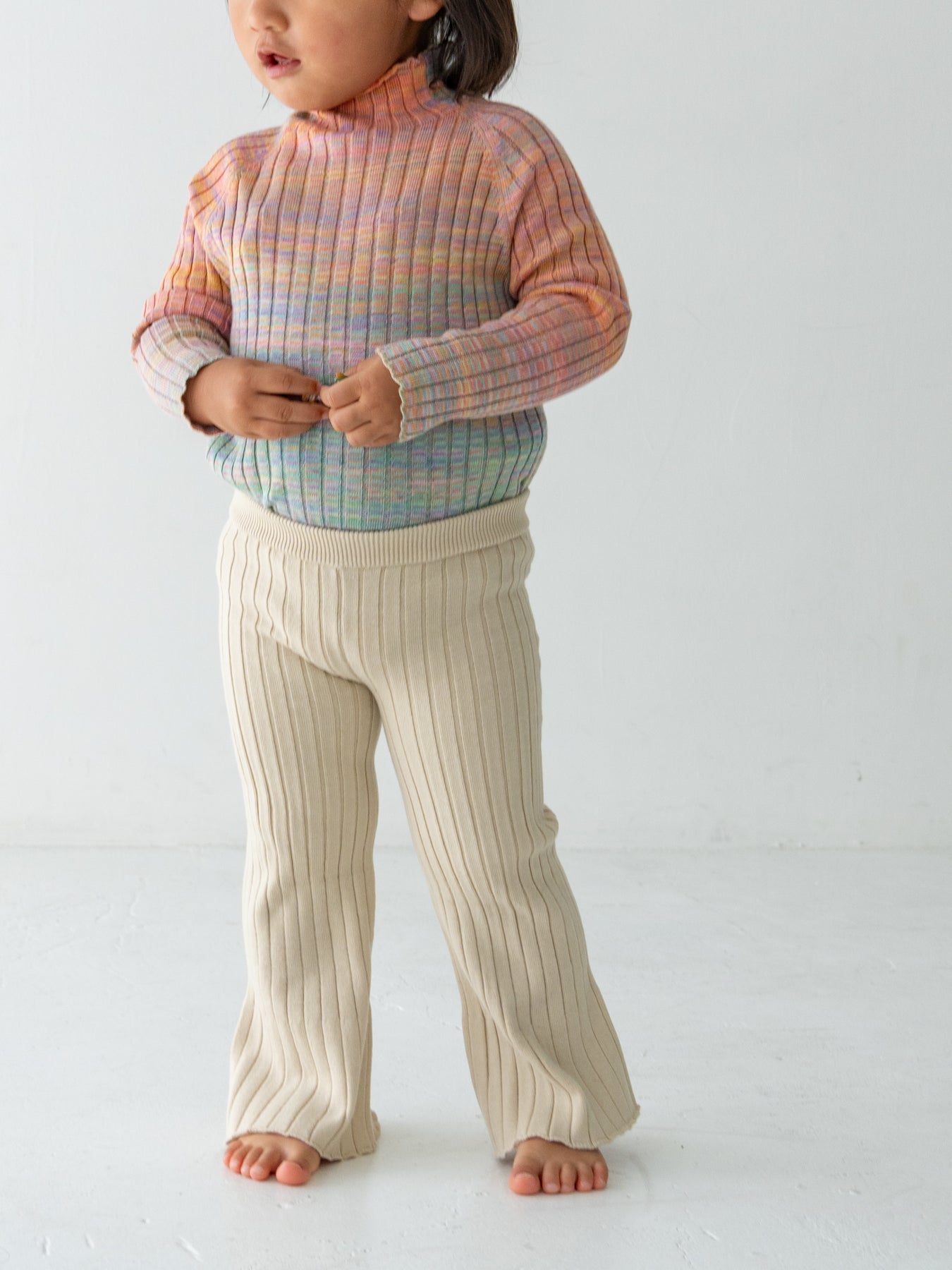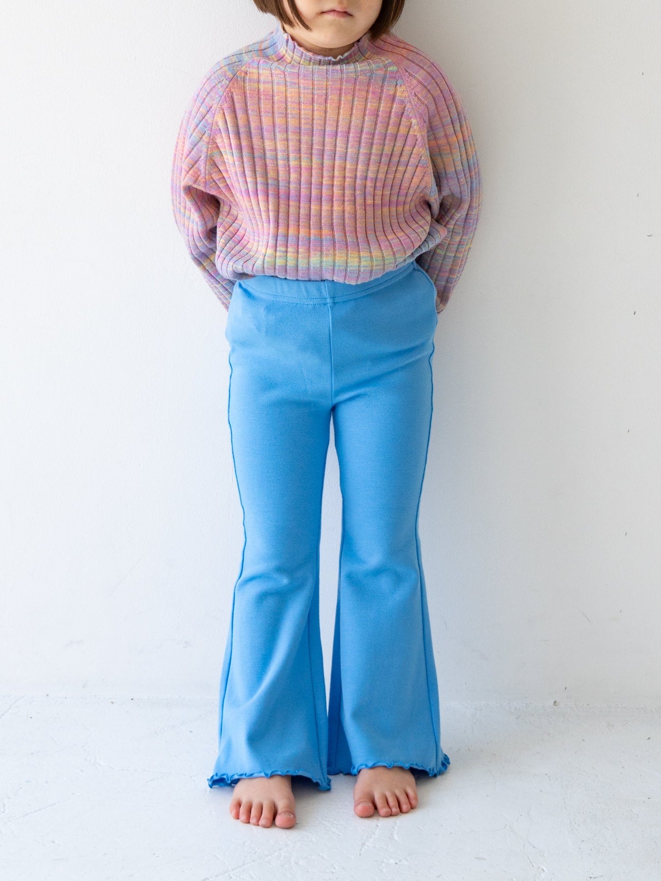 お揃いのニットパンツと合わせれば、特別感のあるセットアップスタイルに。