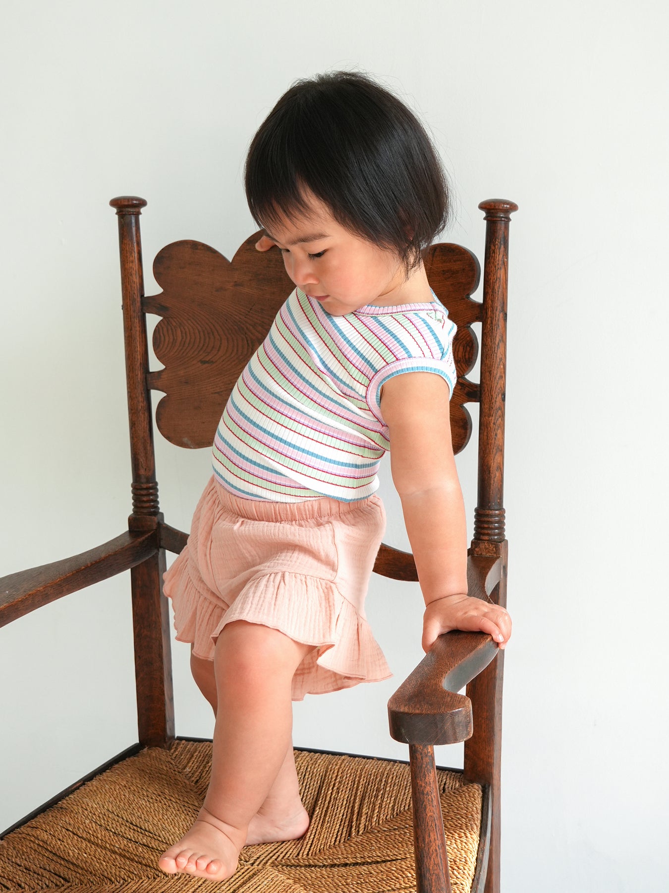 同素材のMulti Stripe Shortsとセットアップでの着こなしもおすすめ。夏のお出かけやリゾートスタイルにぴったりです。もちろん、デニムやショーツなどとの相性も良く、着回し力の高いアイテムとして活躍してくれます。