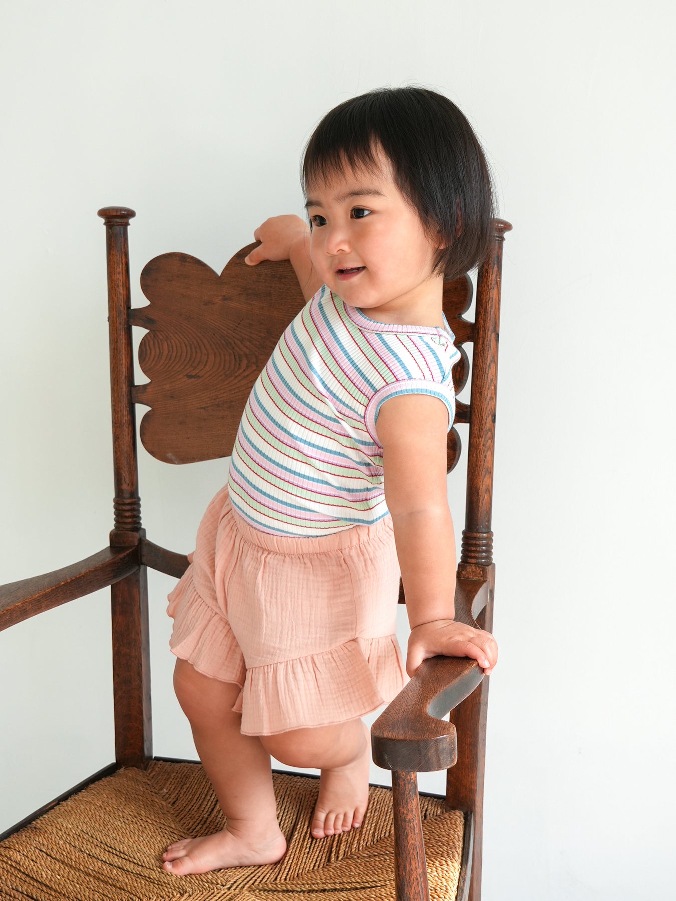 リラックス感がありながらも、すっきりとしたシルエットで、カジュアルにも少しレトロにも着こなせます。
