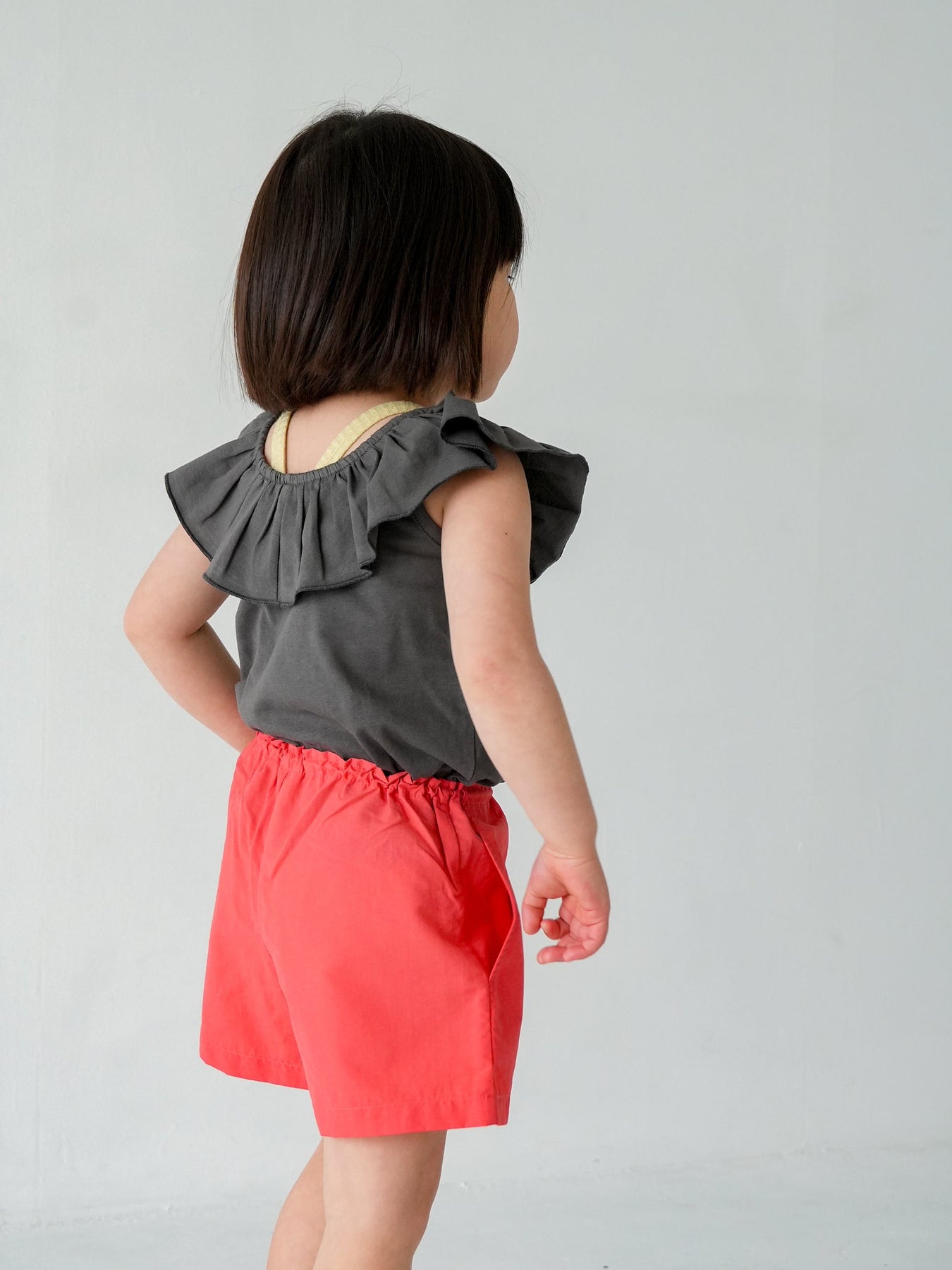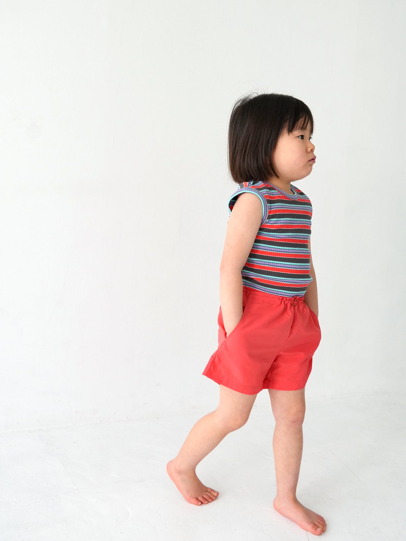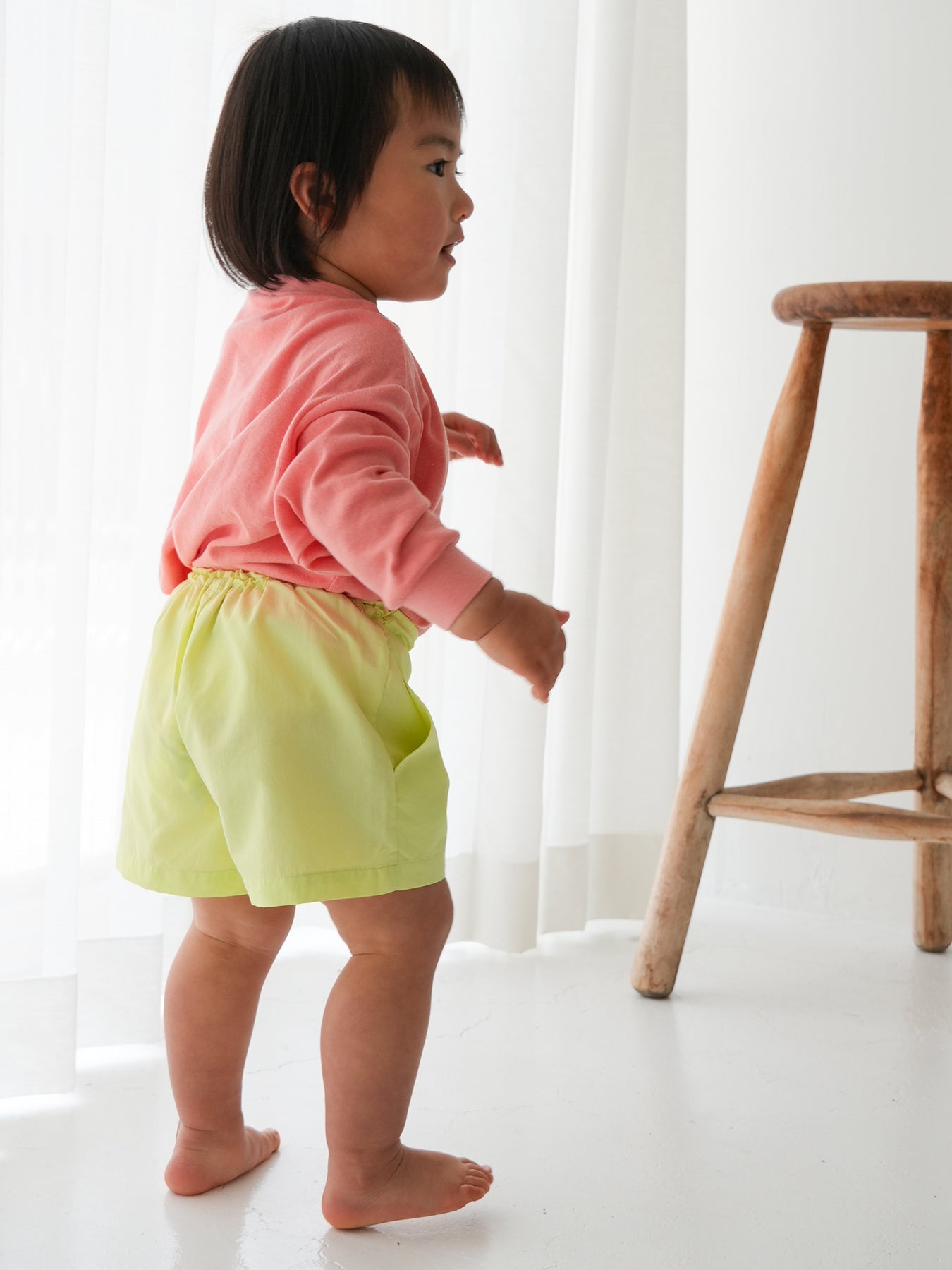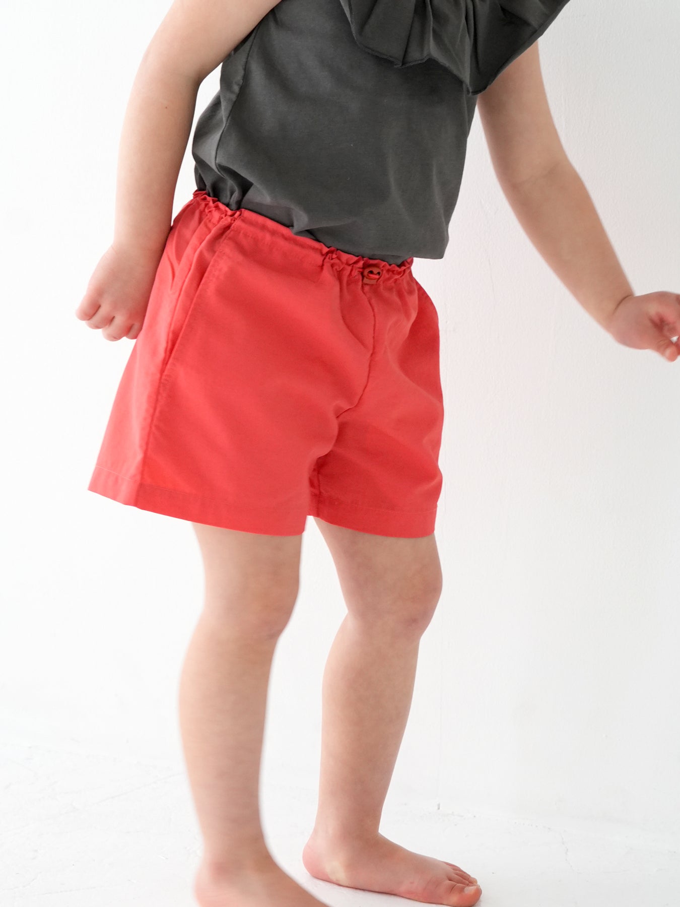目を惹くカラーとシンプルなシルエットが魅力のショートパンツ。
