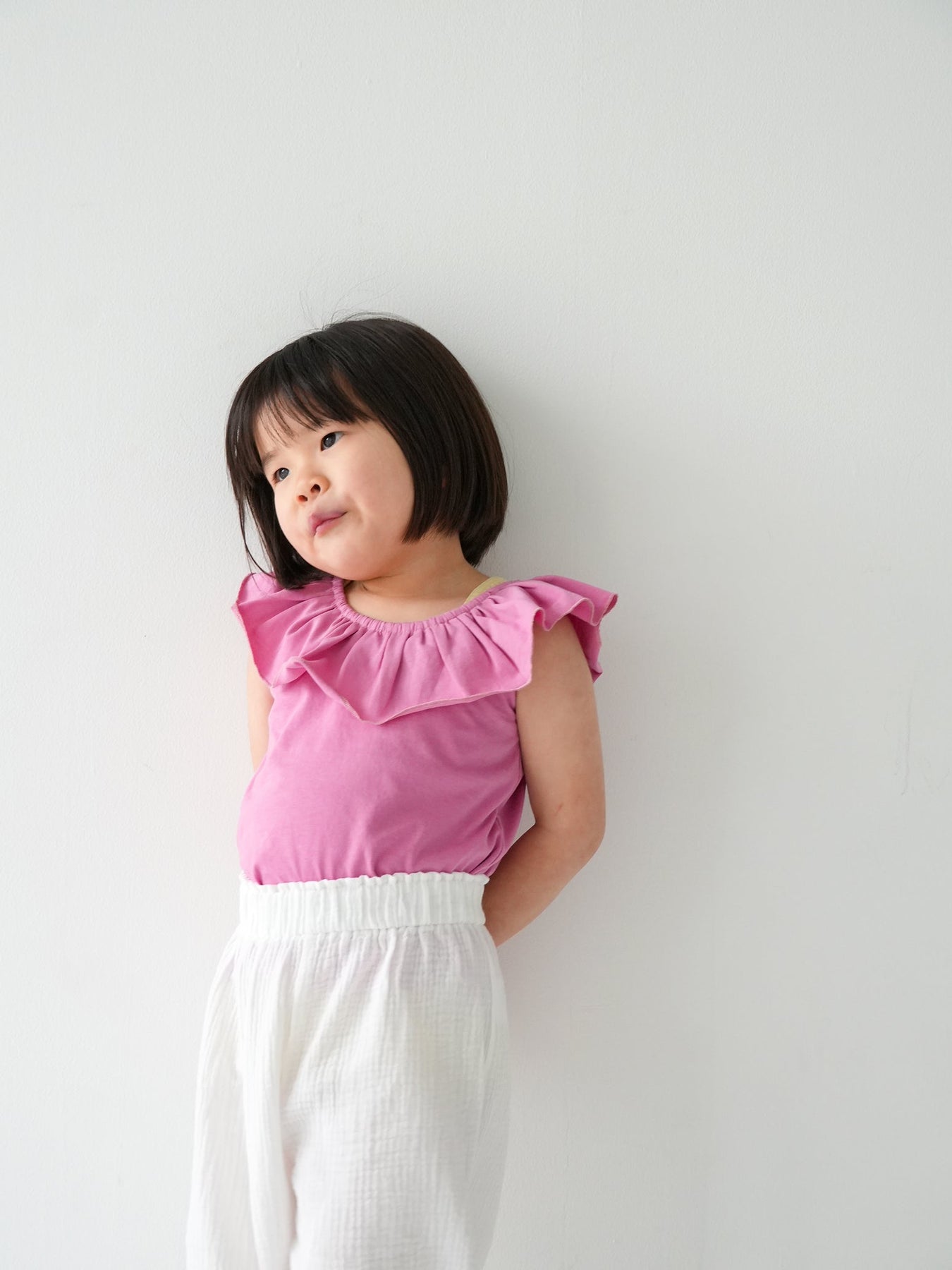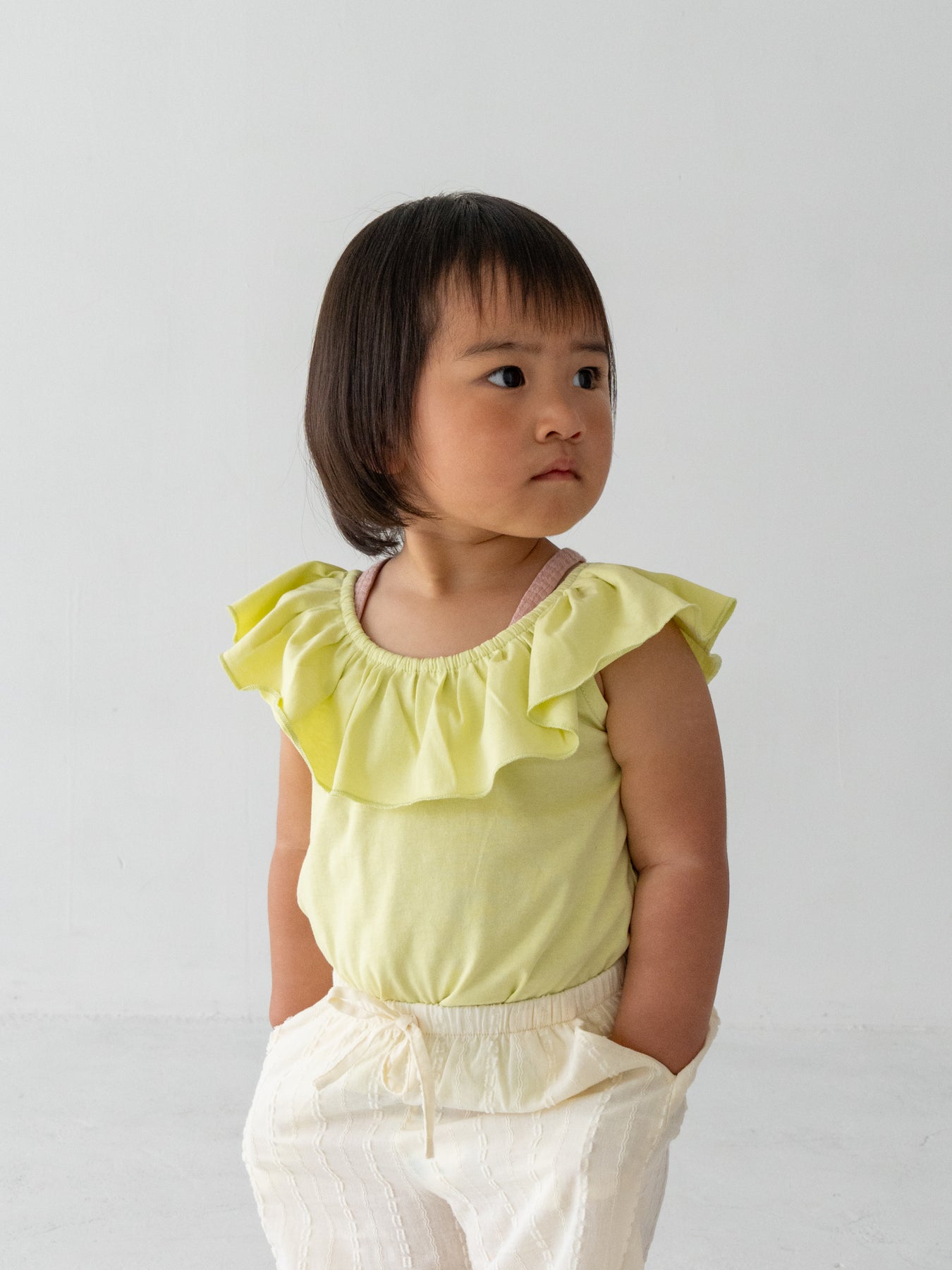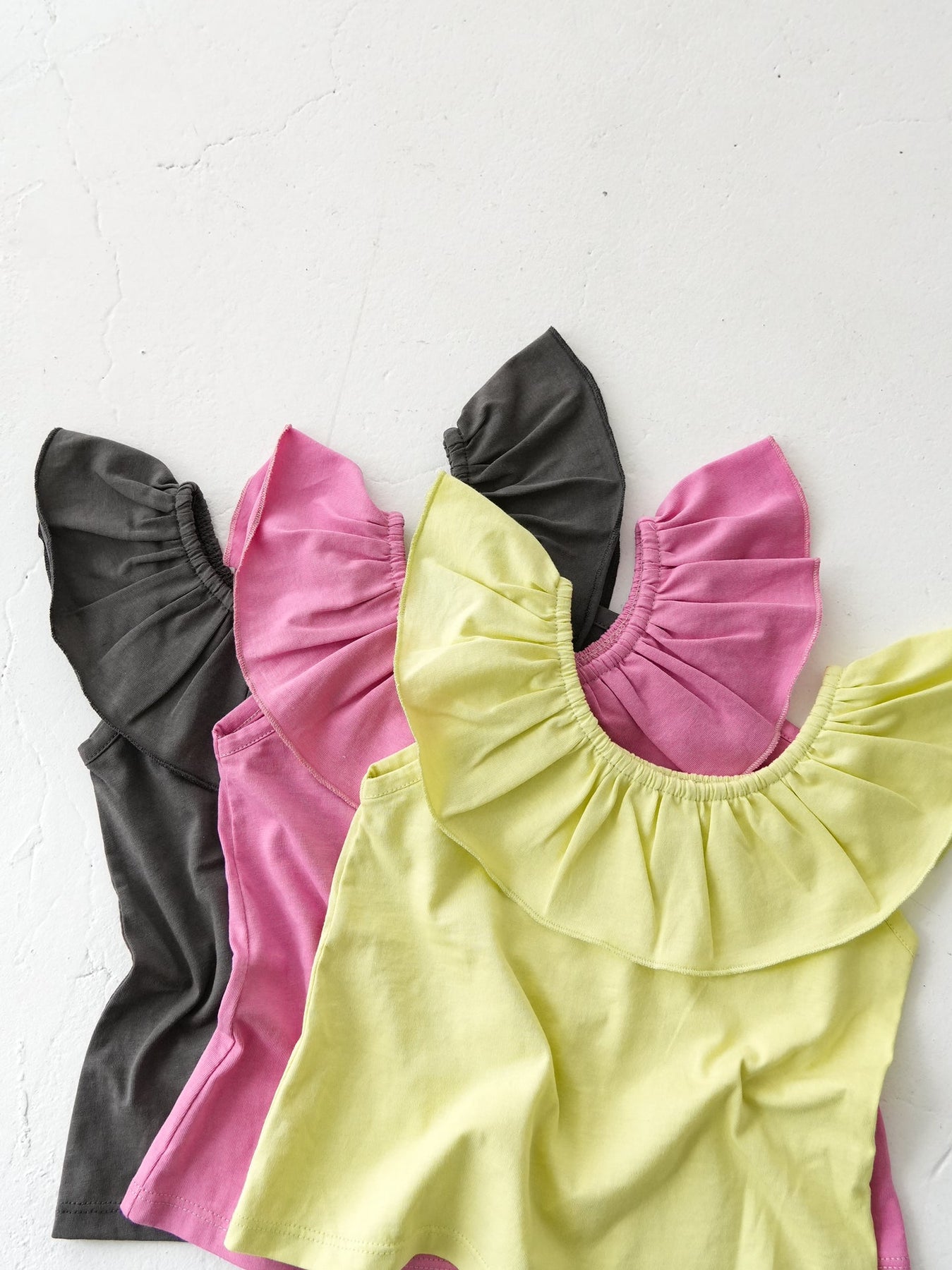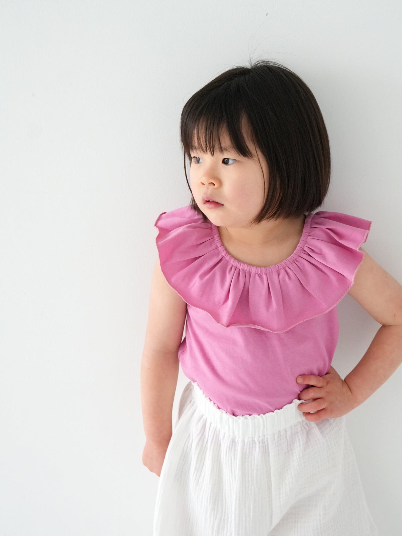 目を引く幅広のラッフルカラーが特徴のRaffle top。コーディネートに取り入れるだけで、ぐっと華やかで印象的なスタイルに仕上がります。