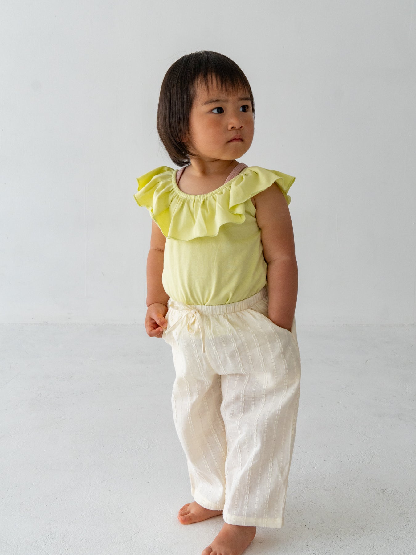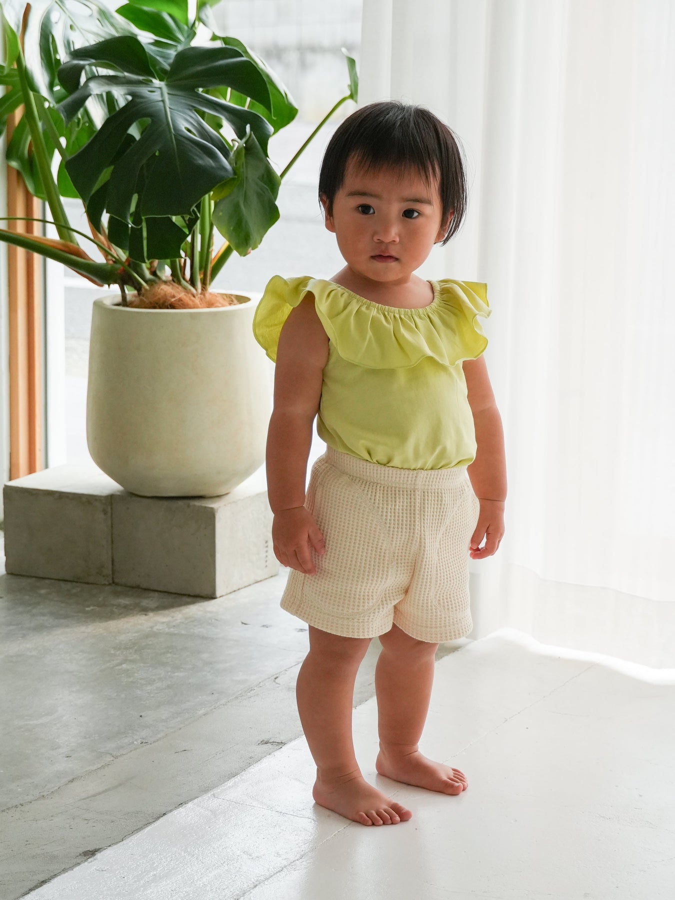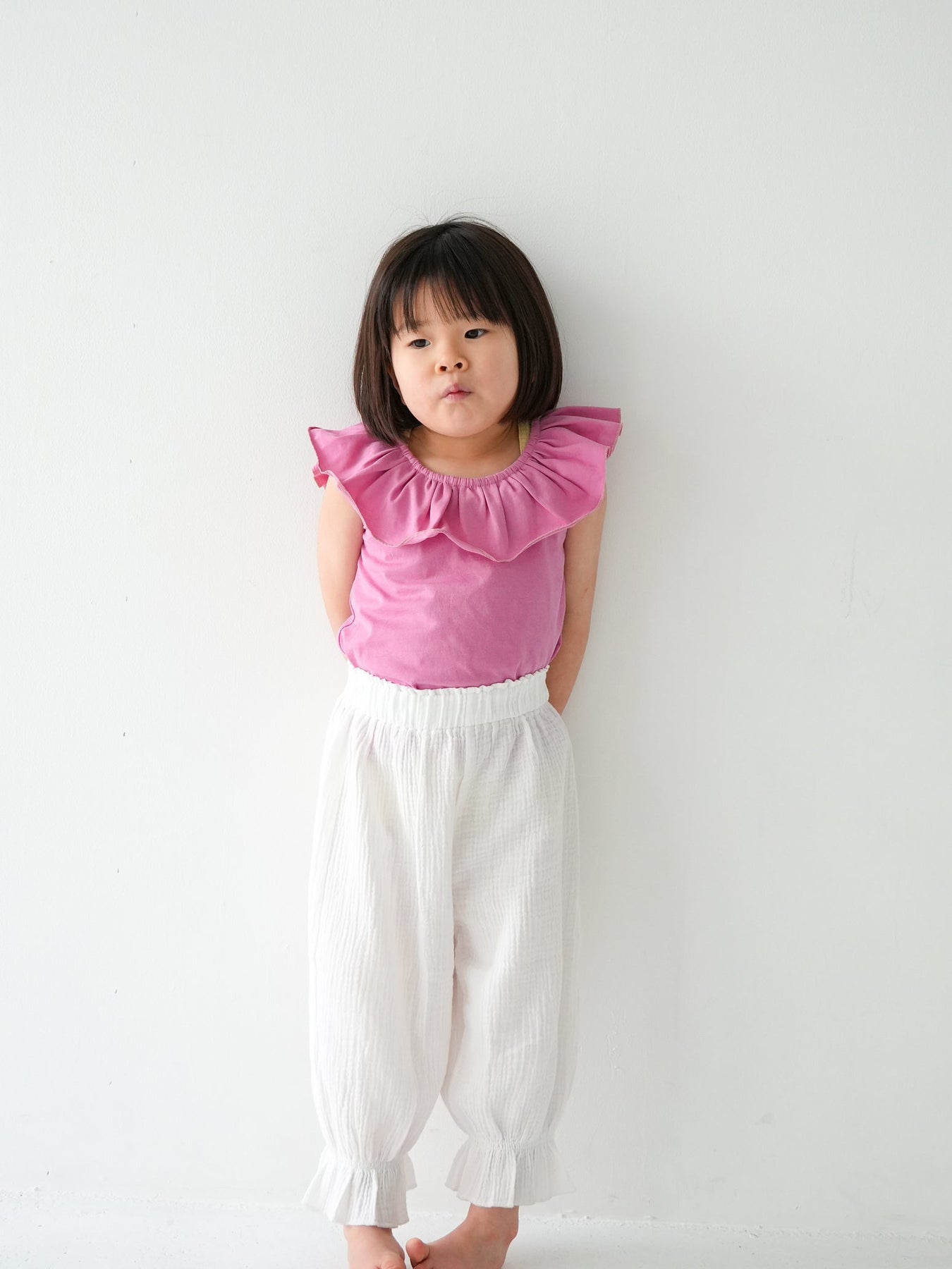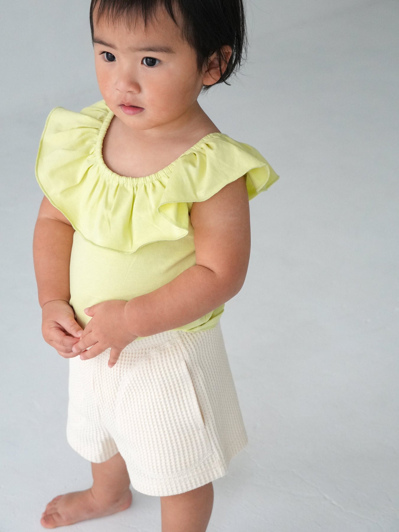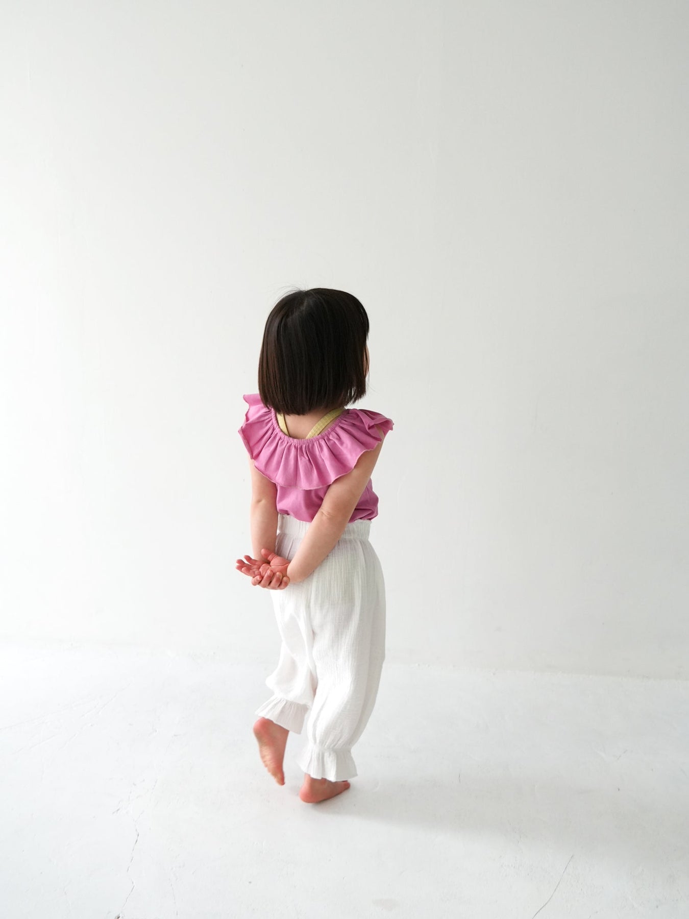 目を引く幅広のラッフルカラーが特徴のRaffle top。コーディネートに取り入れるだけで、ぐっと華やかで印象的なスタイルに仕上がります。