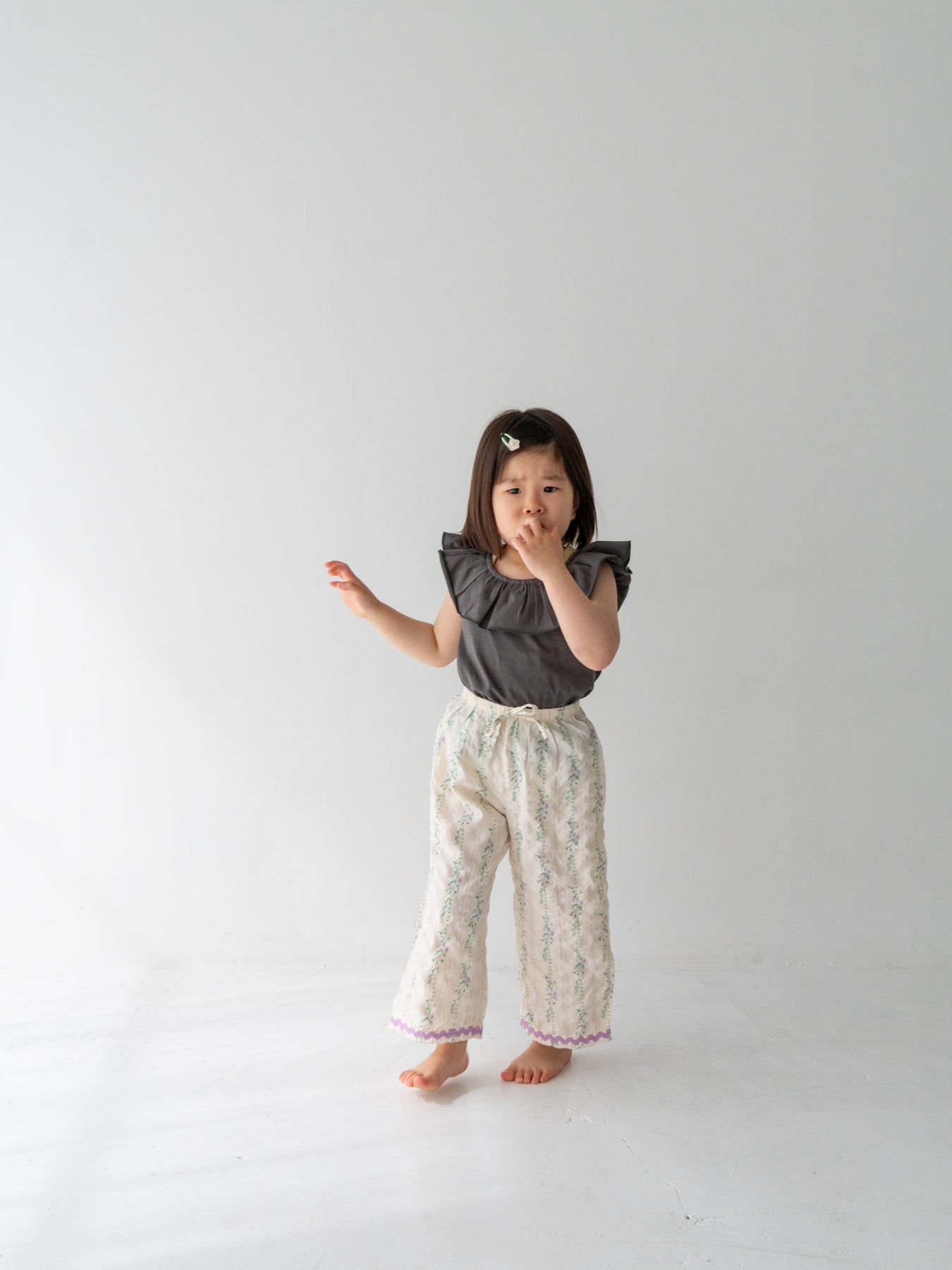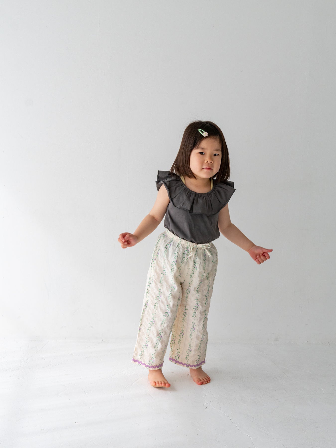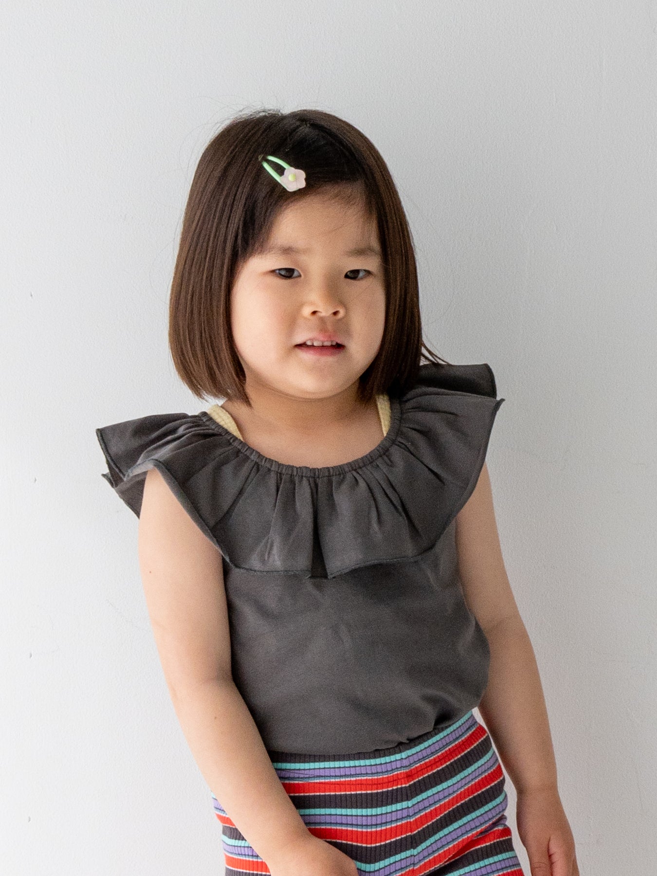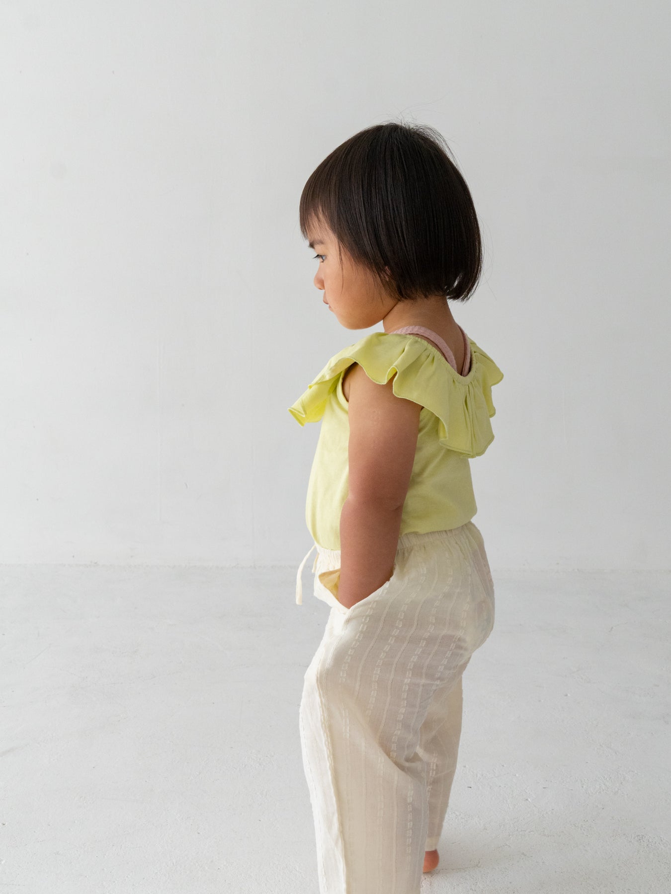 目を引く幅広のラッフルカラーが特徴のRaffle top。コーディネートに取り入れるだけで、ぐっと華やかで印象的なスタイルに仕上がります。