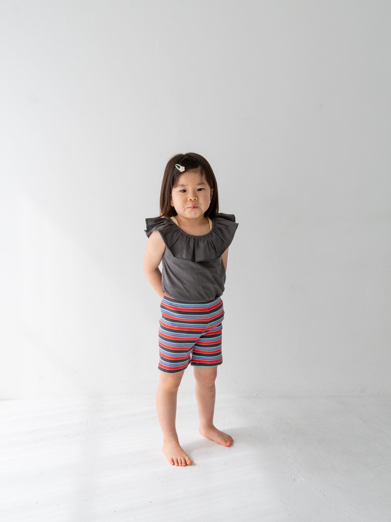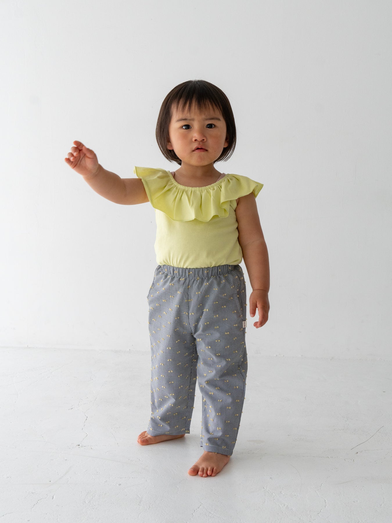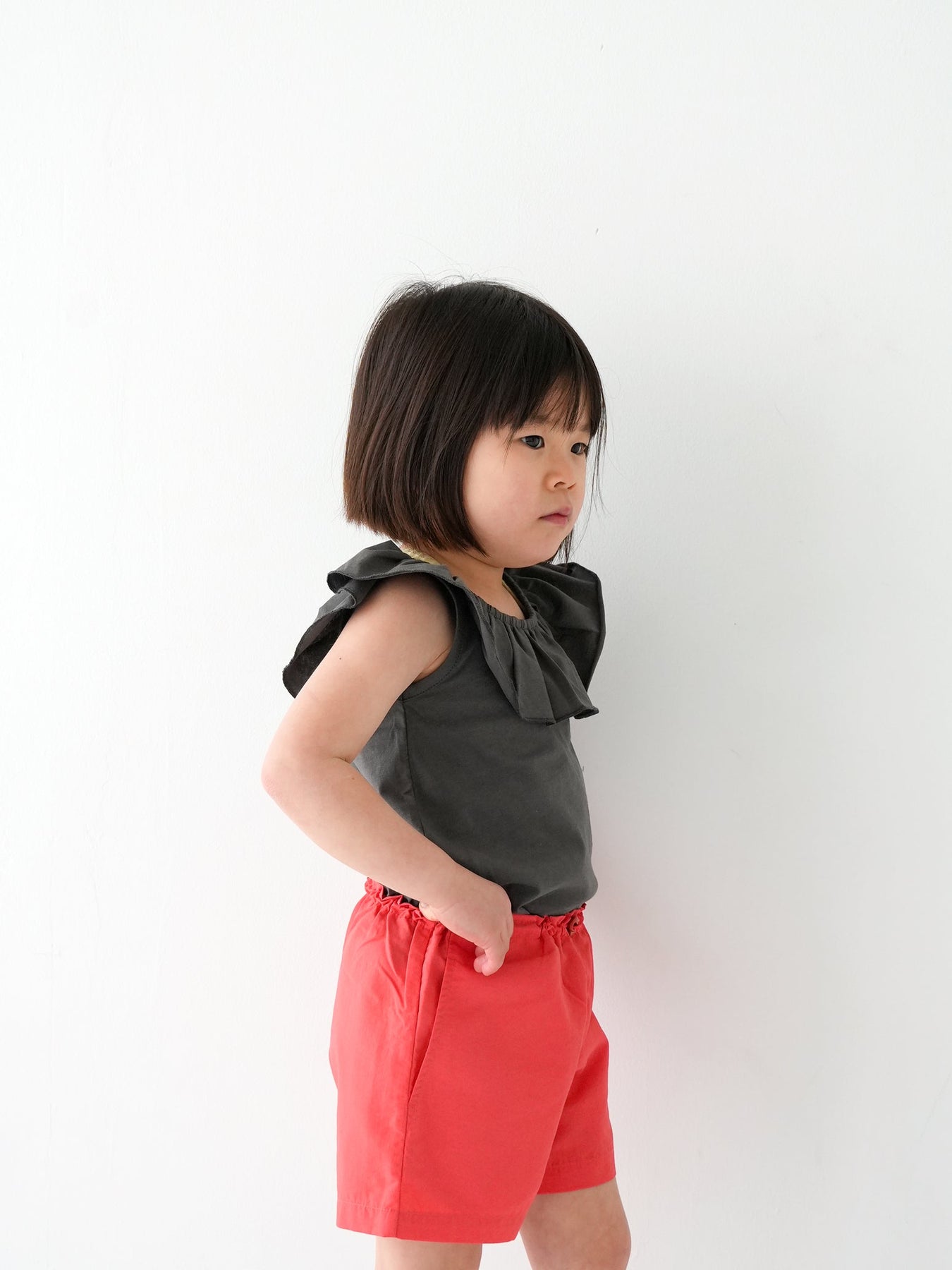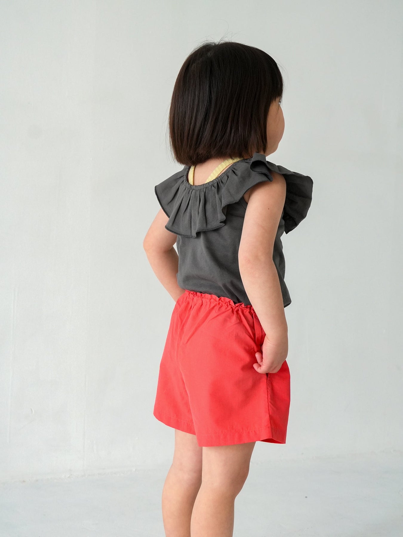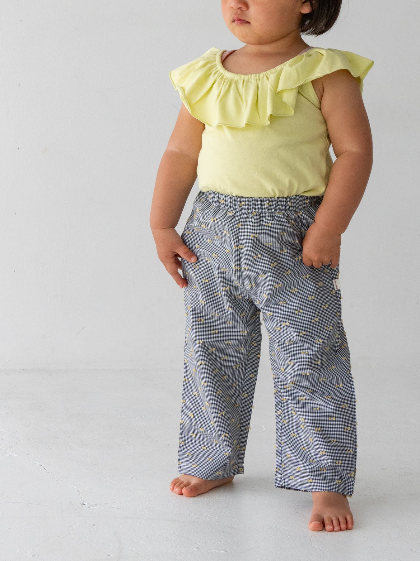 ゆったりシルエットのギンガムチェックリボンパンツやコットンパンツと合わせれば、どこか懐かしいレトロな雰囲気に。ショーツと合わせれば、元気で軽やかなカジュアルスタイルにも。程よい丈感なので、フレアデニムやデニムショーツと合わせてチュニック風に着るのもおすすめです。
