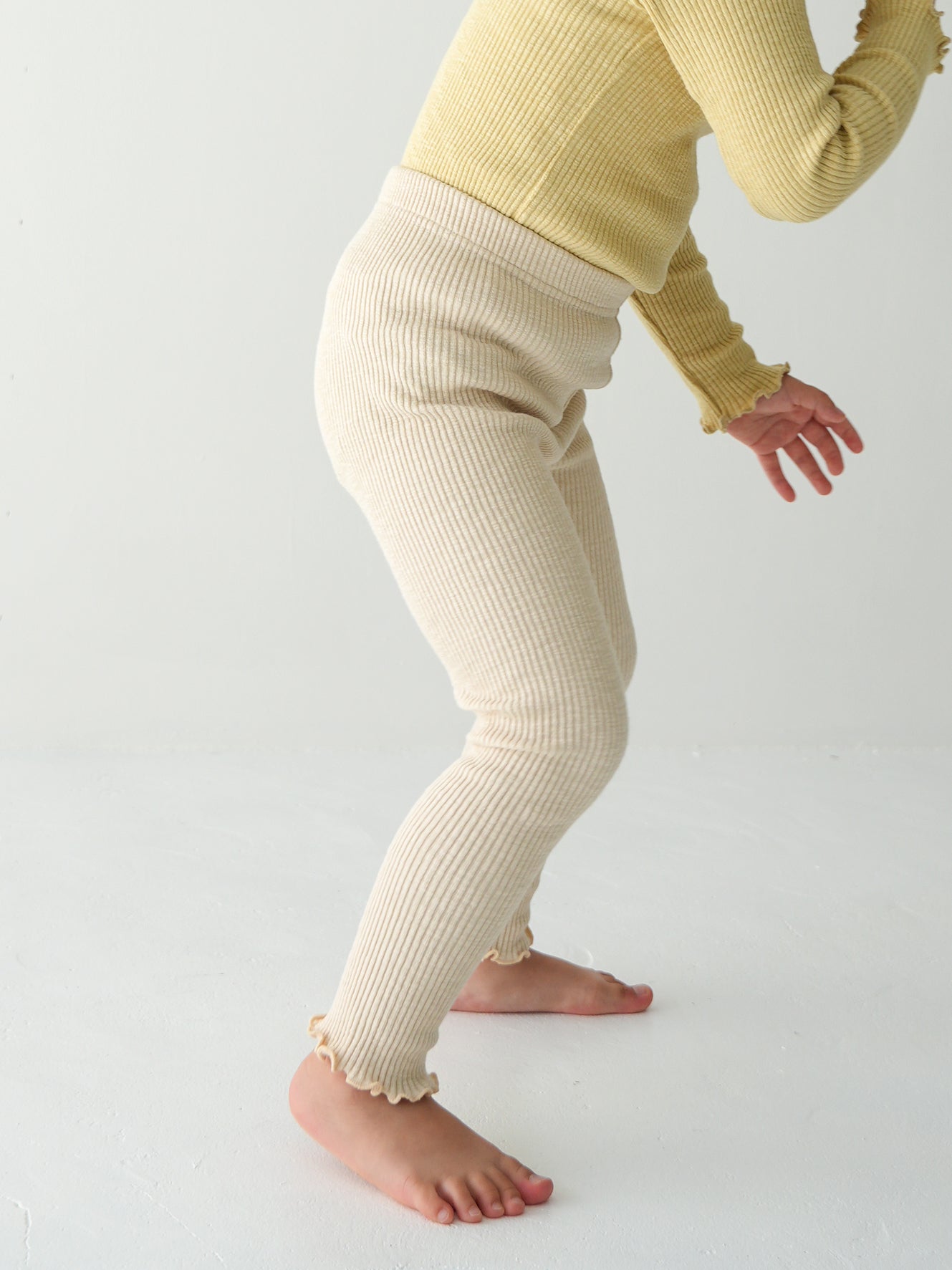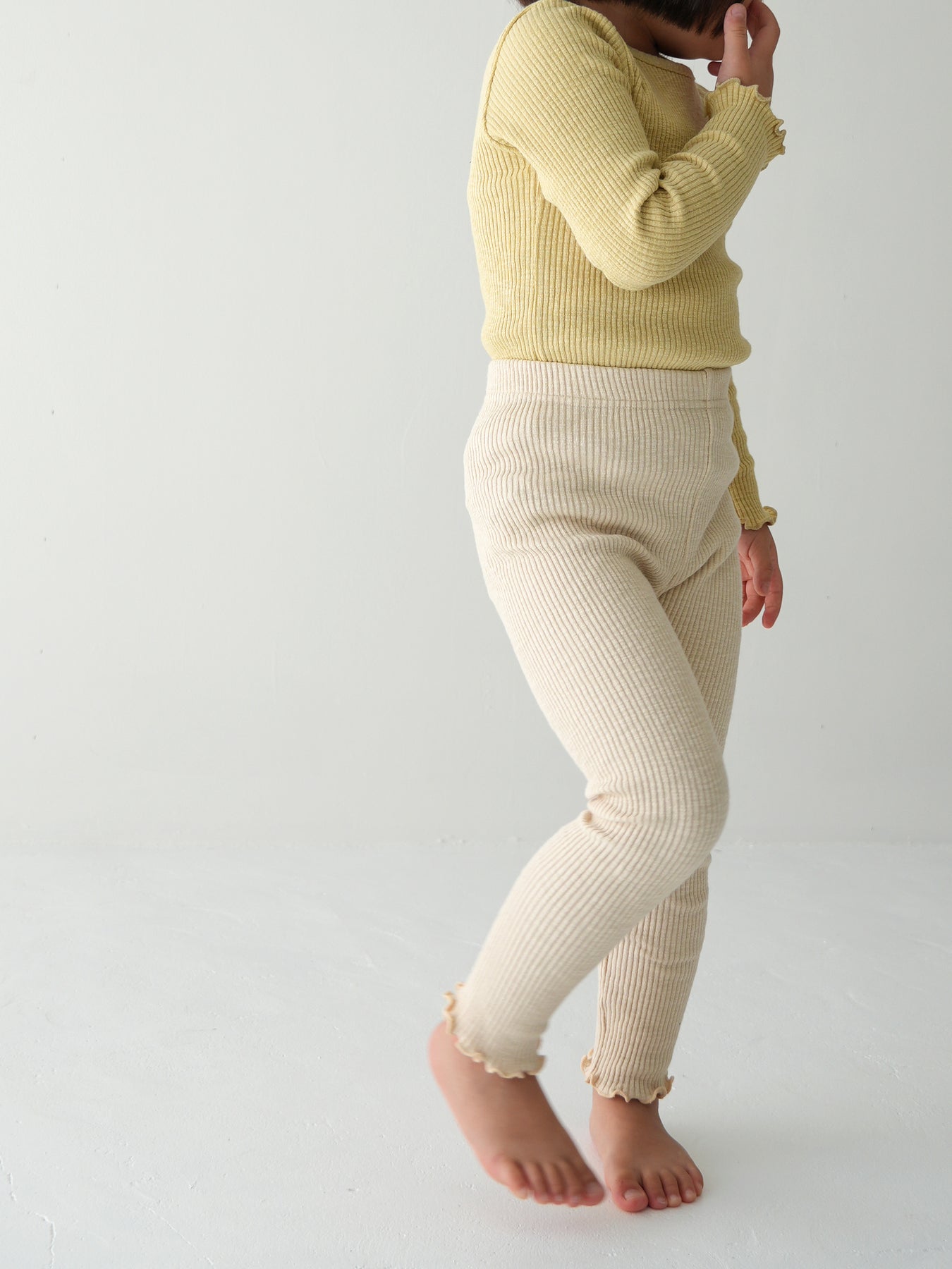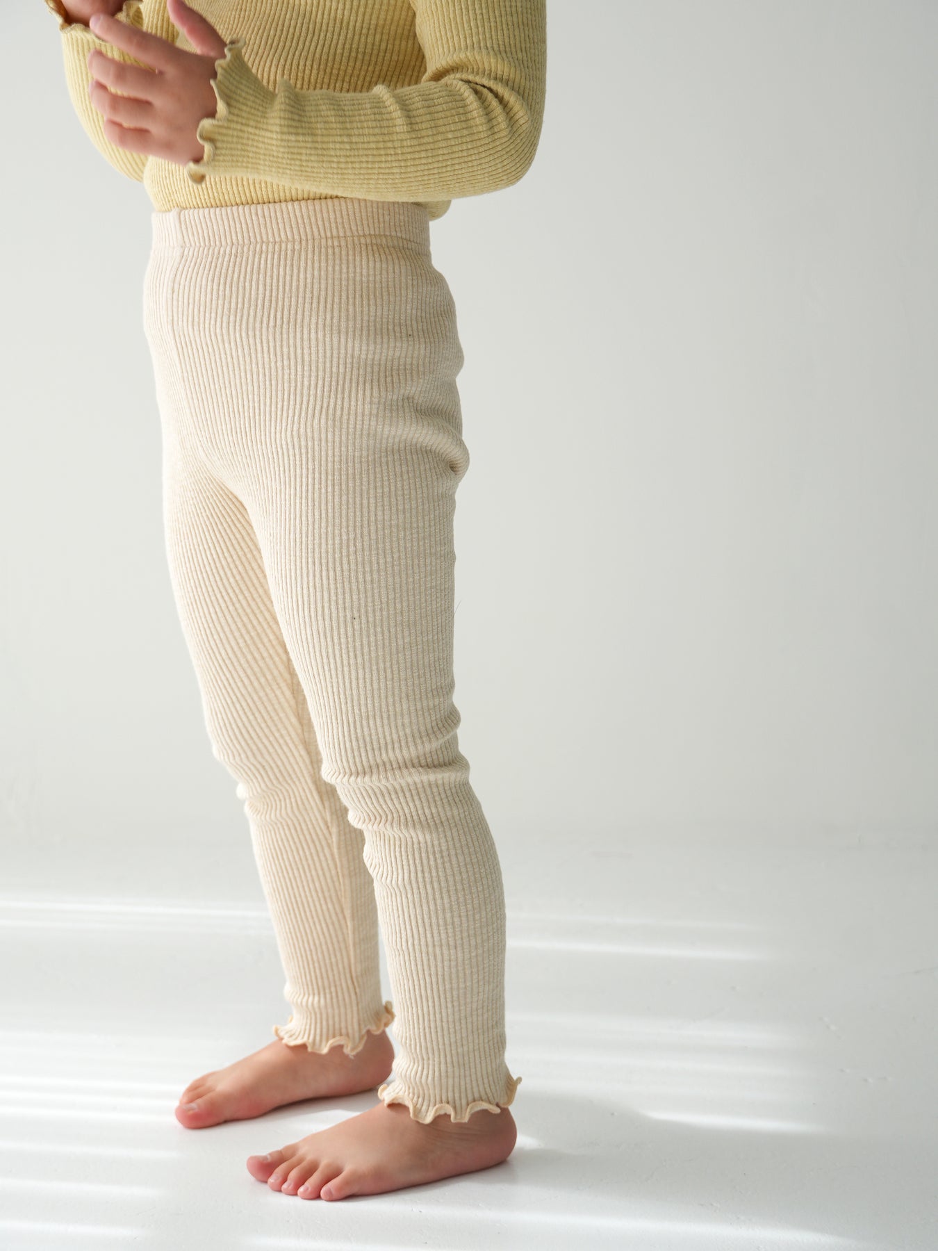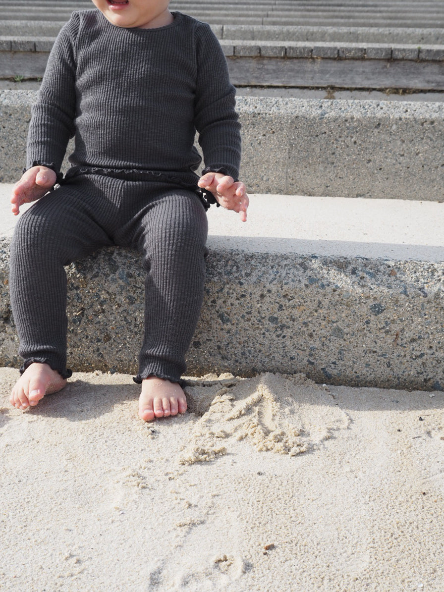 モダール混のコットンリブ素材で伸縮性よく着心地も抜群なリブレギンスです。
