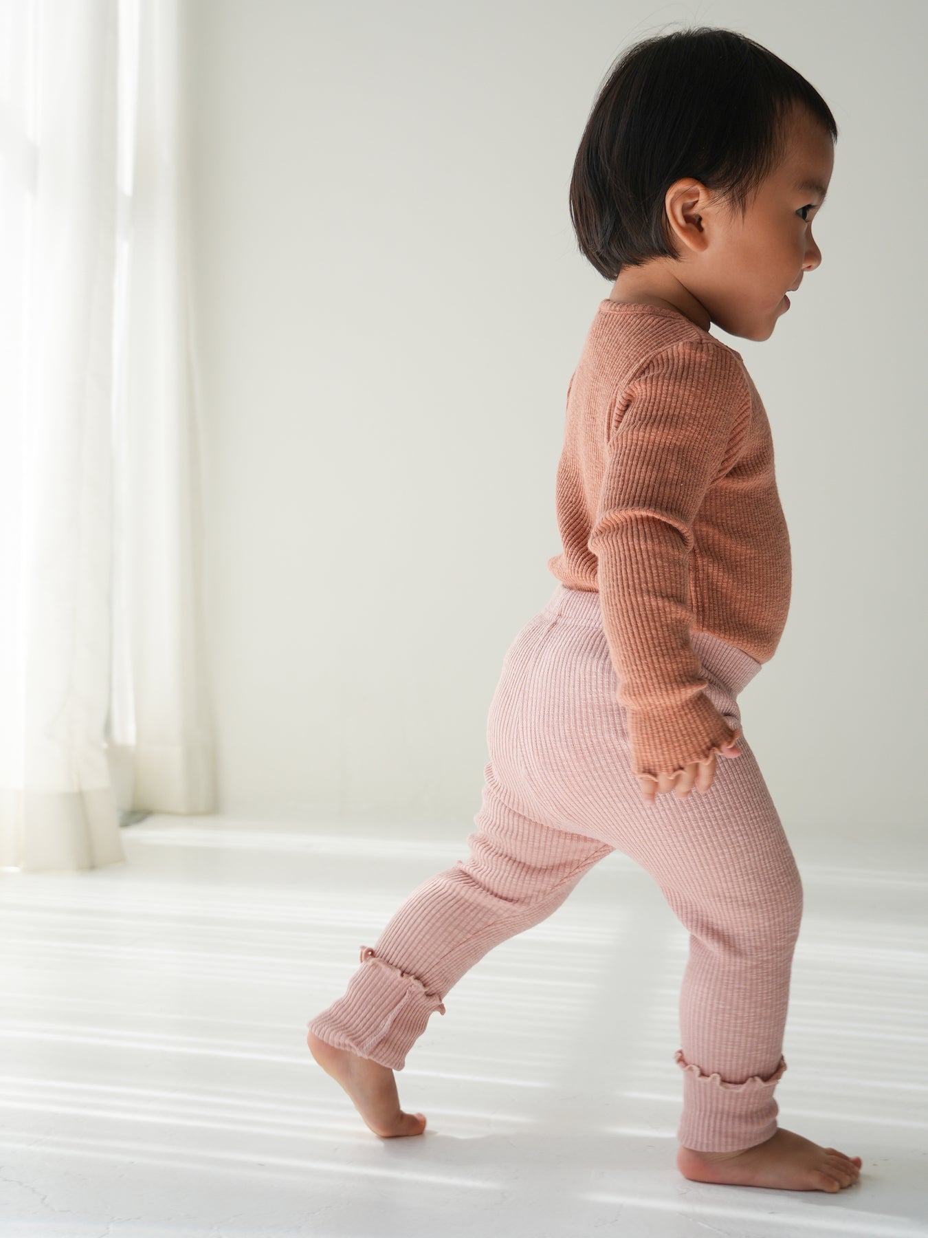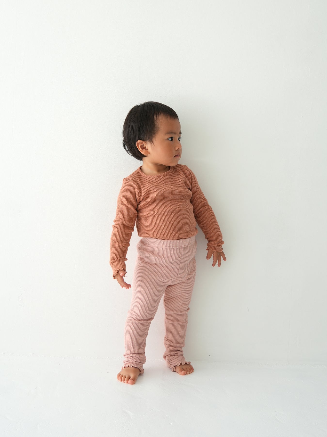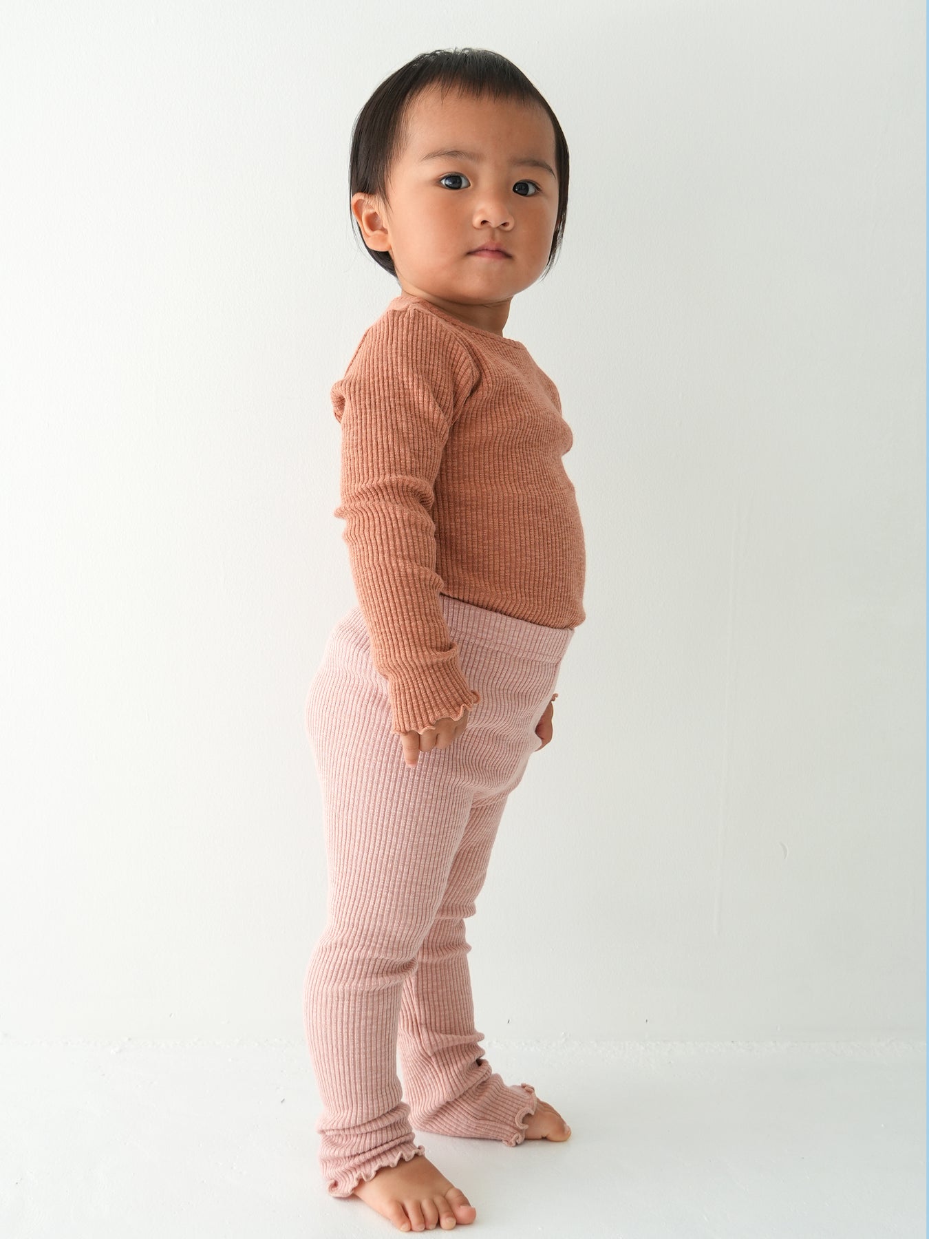 モダール混のコットンリブ素材で伸縮性よく着心地も抜群なリブレギンスです。