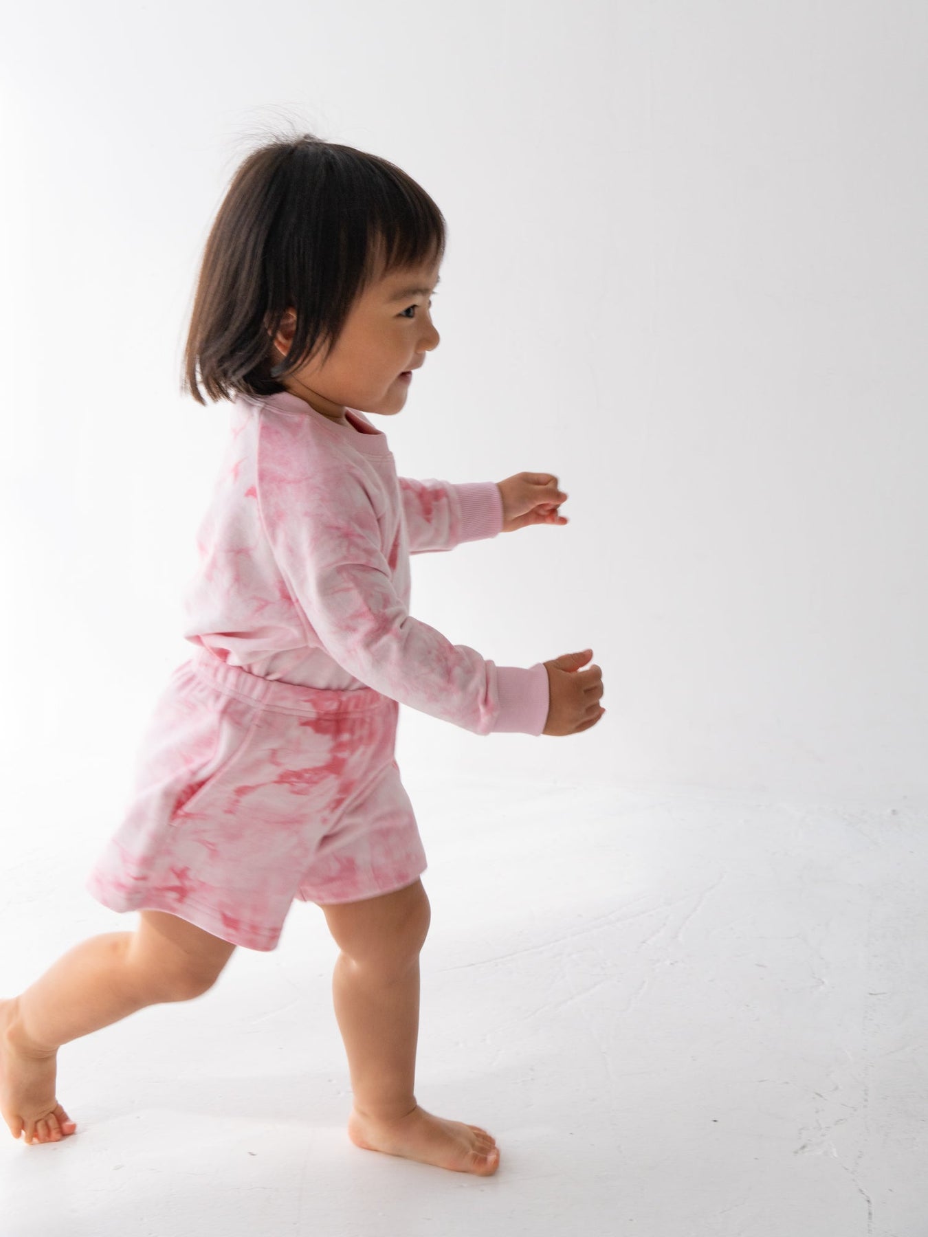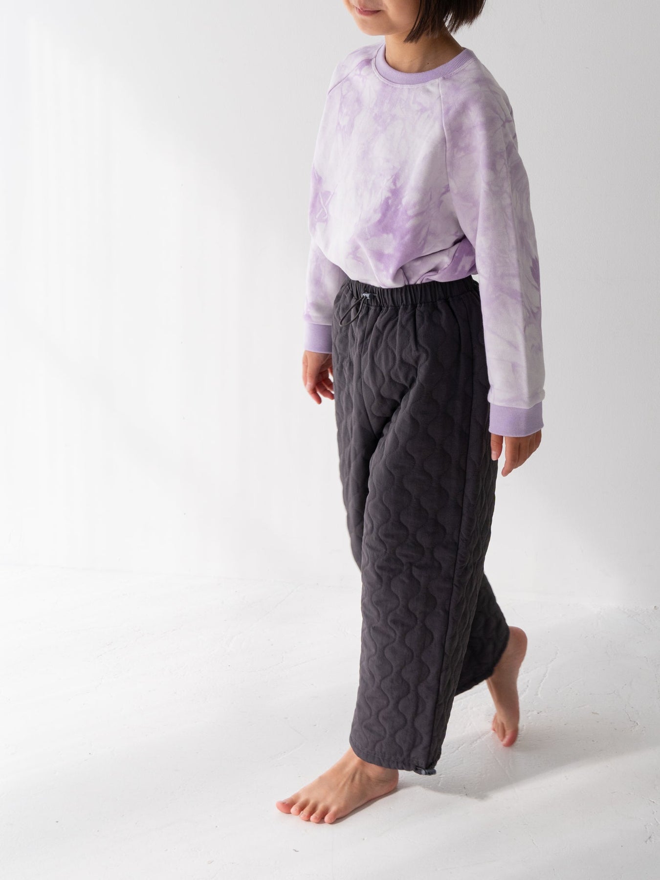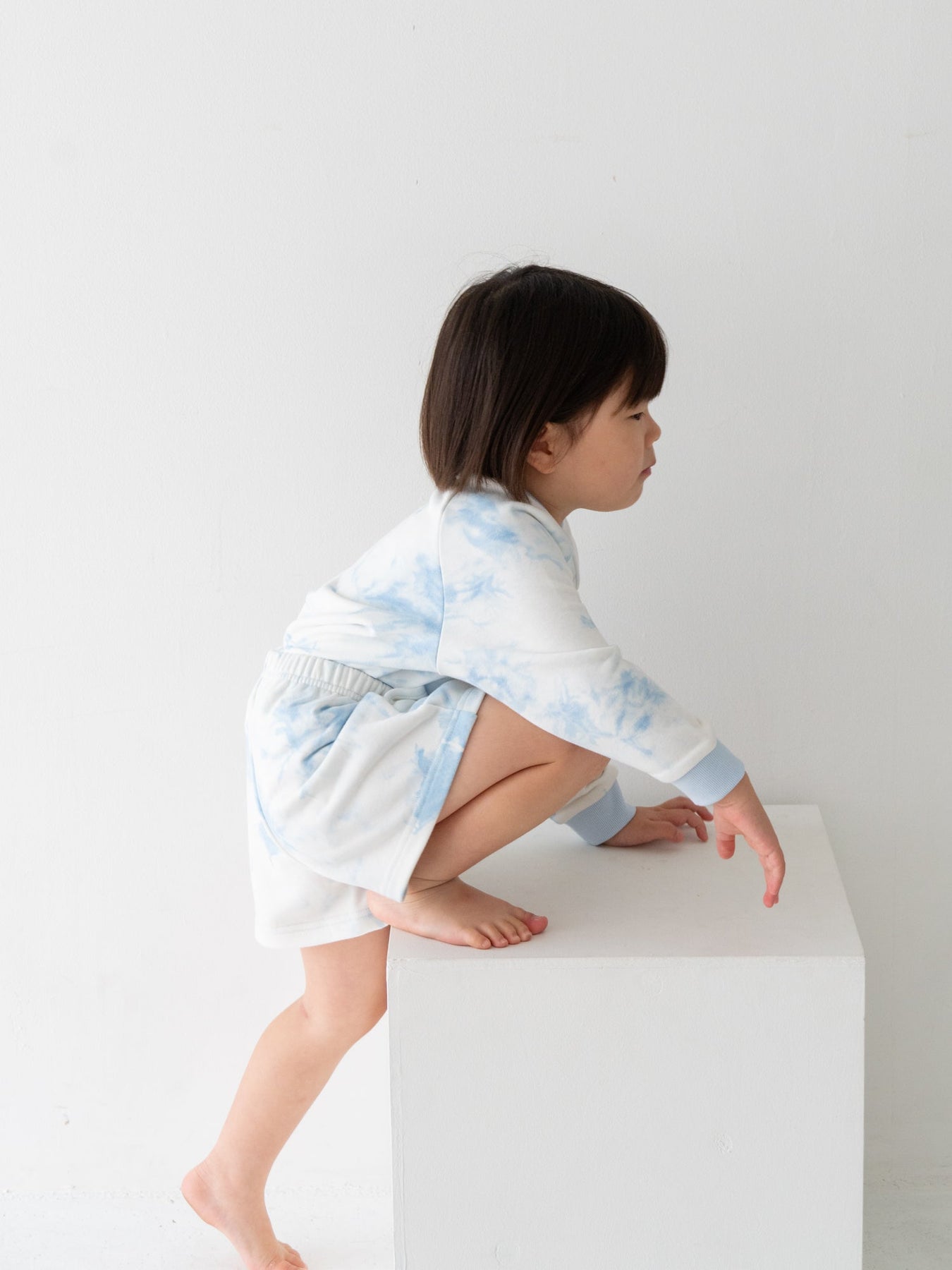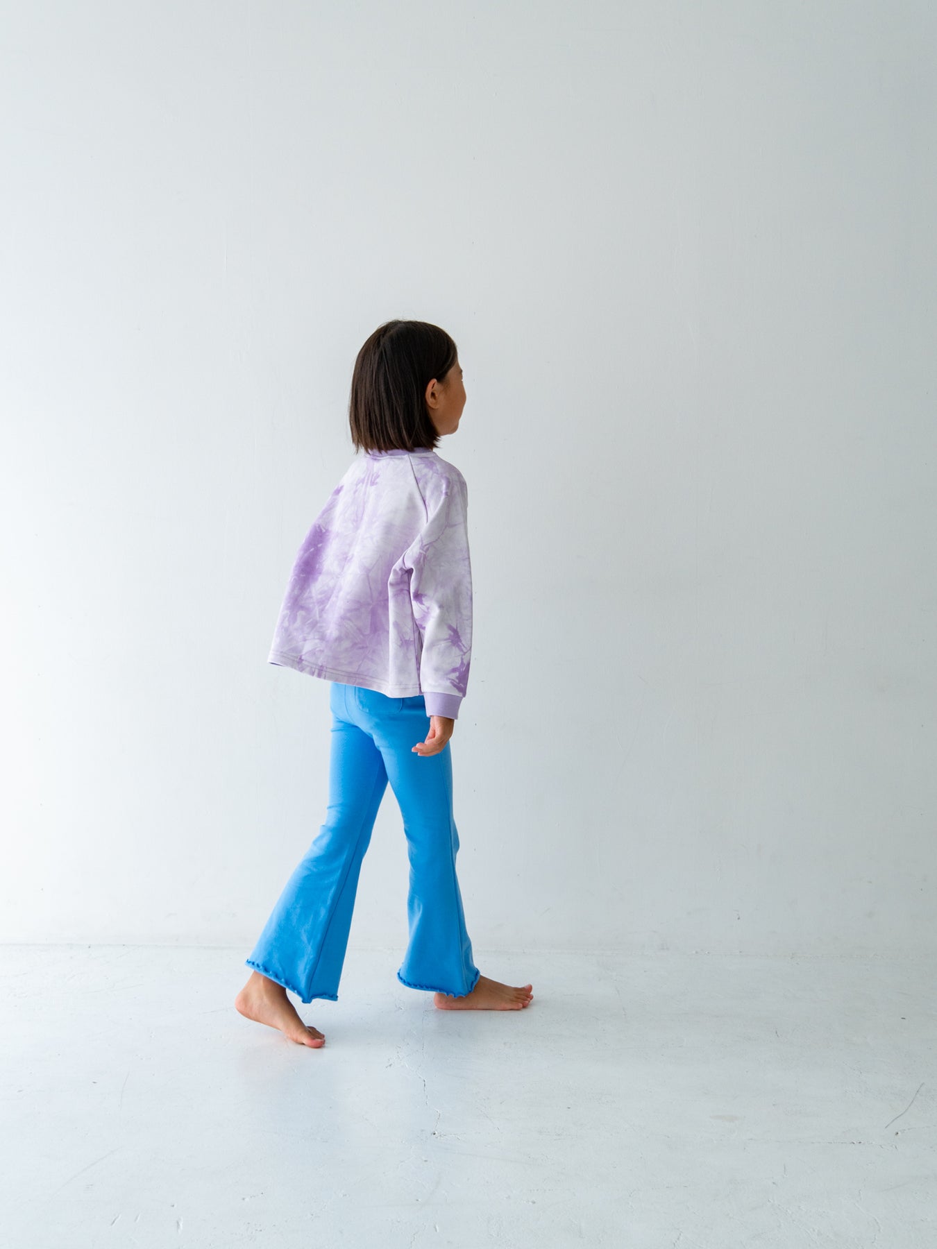 デニムなどのベーシックなボトムスはもちろん、お揃いのタイダイショーツとのセットアップスタイルもおすすめ。着回しやすさと華やかさを両立した、デイリーに頼れるスウェットです。