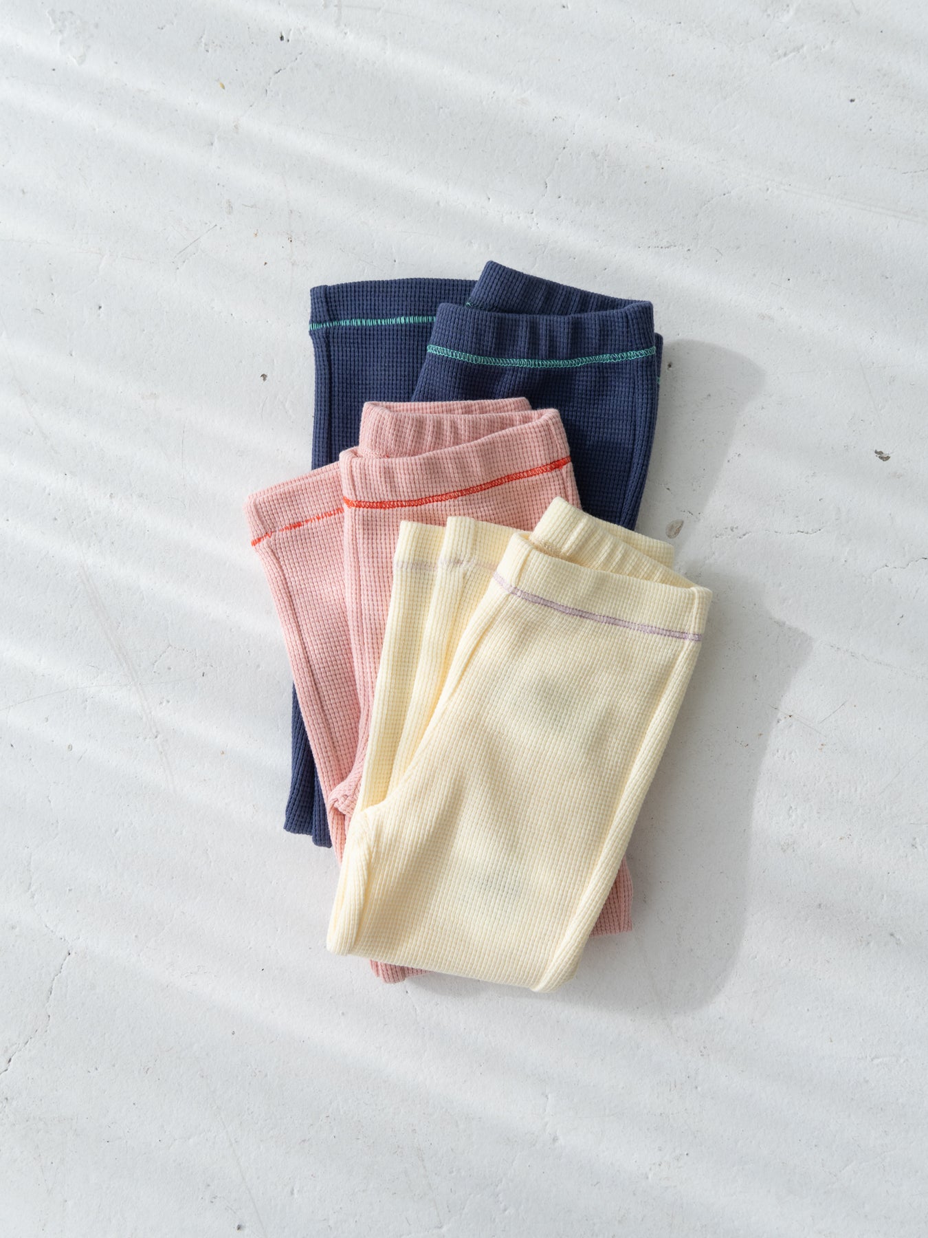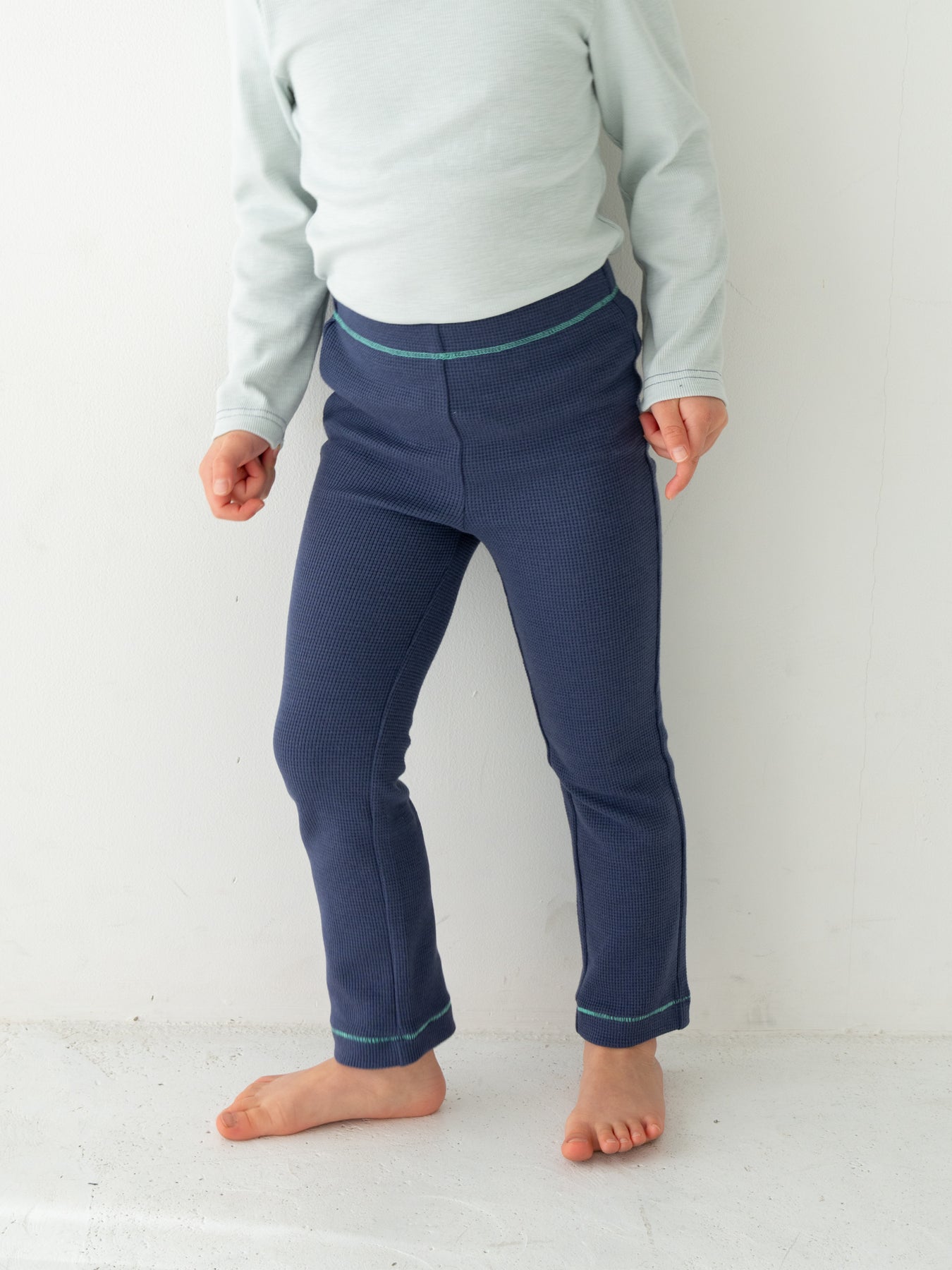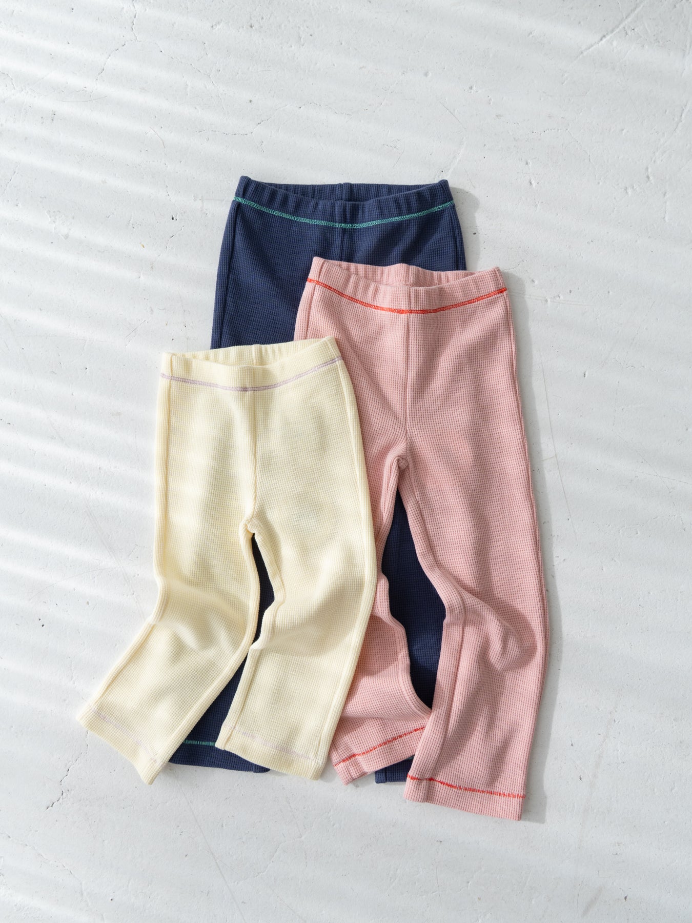 ストレッチの入ったコットンワッフル素材を使用したレギンス。
