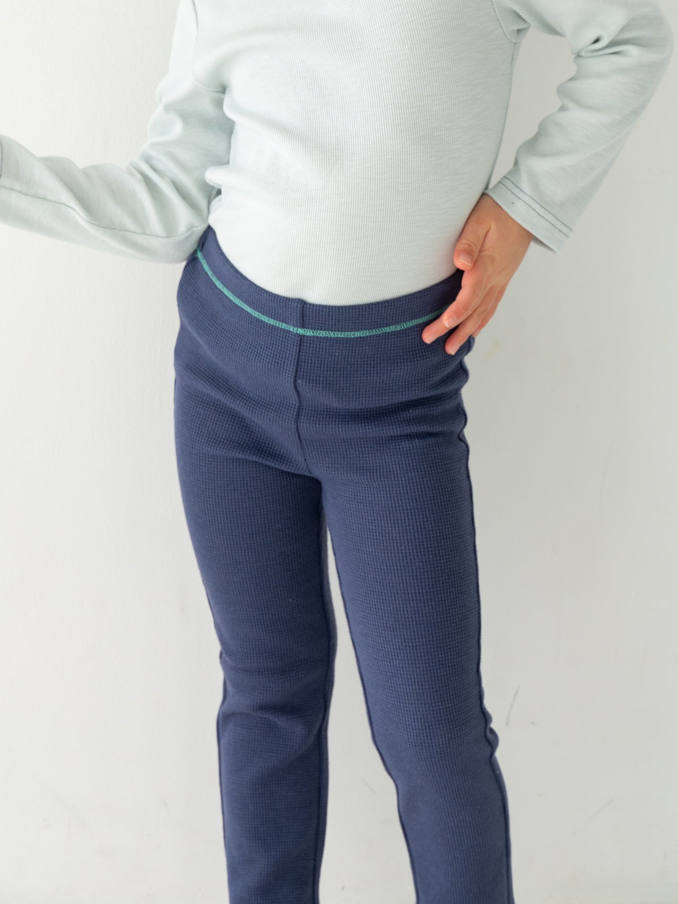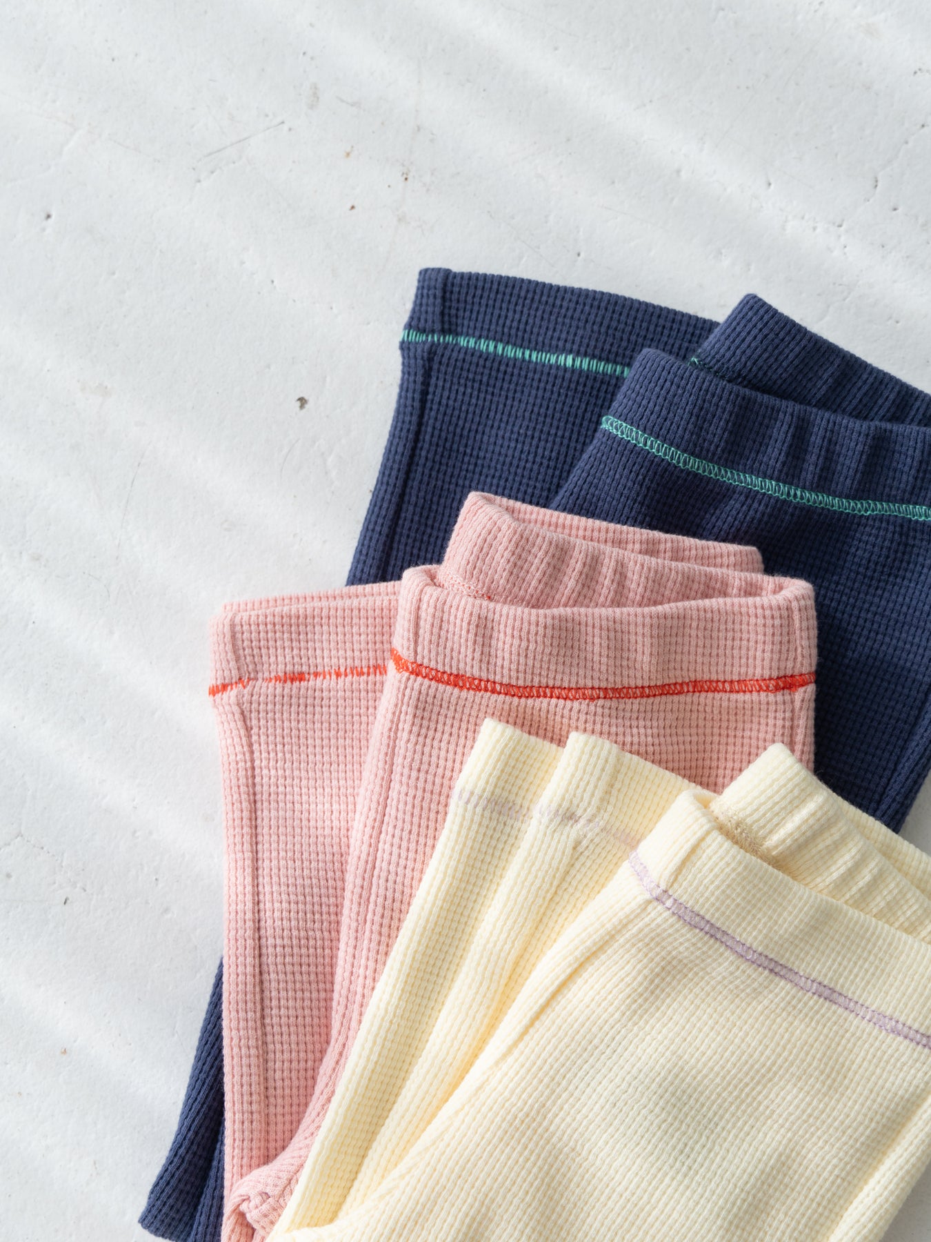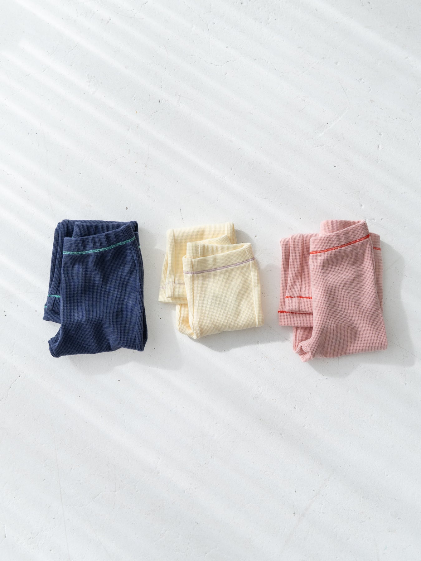 ストレッチの入ったコットンワッフル素材を使用したレギンス。