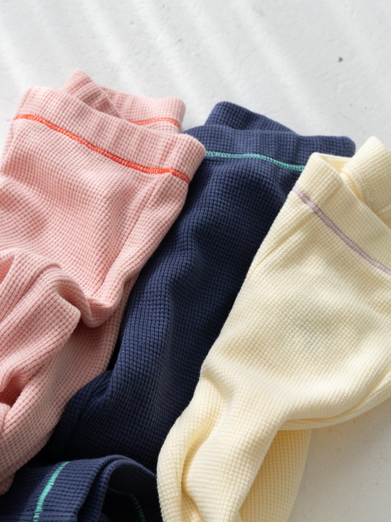 コットンワッフルに伸縮性をプラスすることで、
